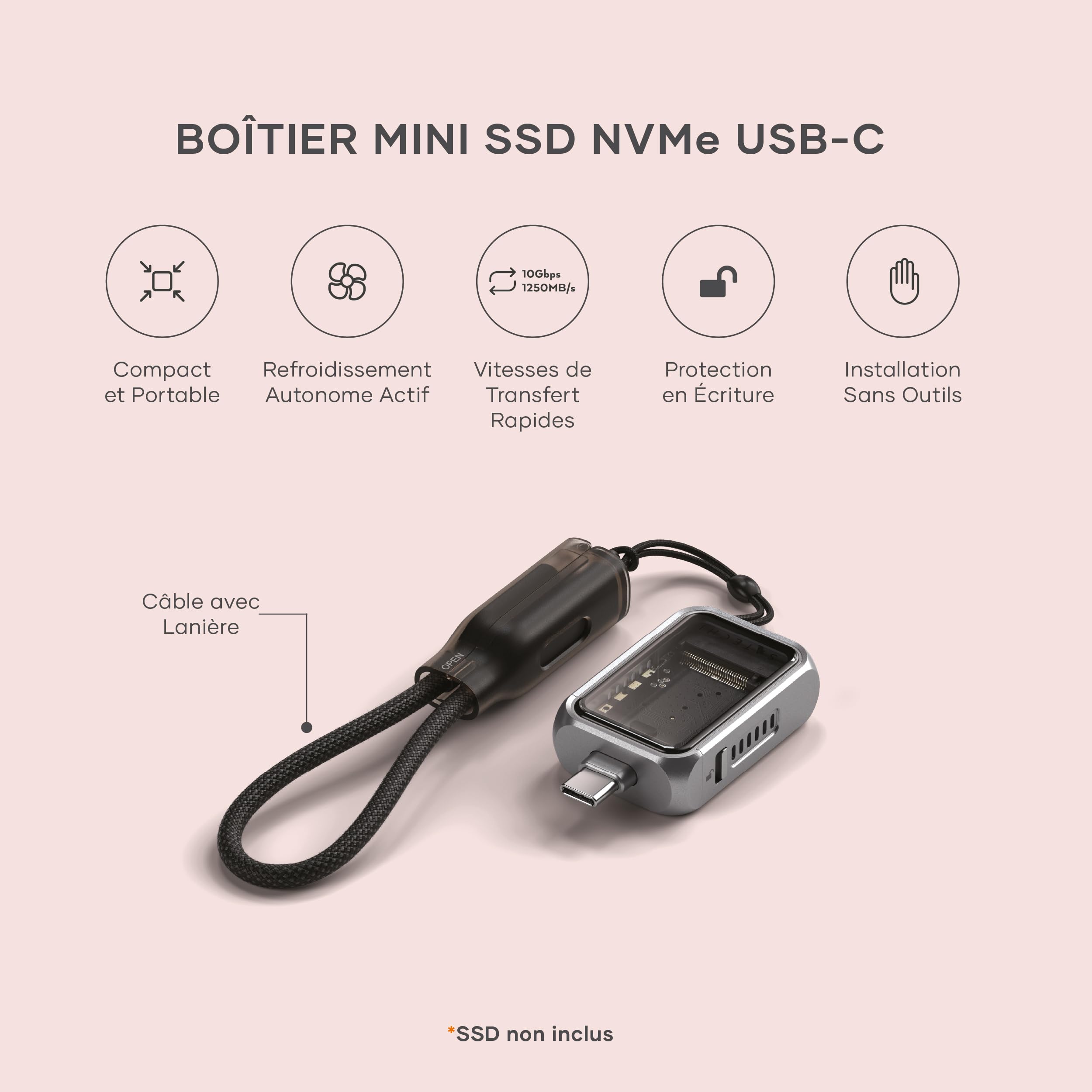 Dissipation efficace de la chaleur : la conception de la coque arrière en métal augmente considérablement la zone de dissipation de la chaleur, permettant une dissipation plus rapide de la chaleur. Cela vous permet de vérifier facilement l'état du SSD M., 2., Plusieurs protections intégrées garantissent la sécurité de votre SSD et des données importantes. Le premier couvercle avec le tampon thermique graphite augmente la surface de dissipation thermique et dissipe la chaleur à temps, ce qui permet à votre SSD de maintenir des vitesses de transfert élevées et de prolonger sa durée de vie Protocoles pris en charge : NVMe Tailles SSD compatibles : 2230/2242/2260/2280., Matériau : aluminium + ABS. Sa durabilité dépasse de loin celle des boîtiers de disque dur en plastique ordinaires. Dissipation de la chaleur améliorée pour la sécurité des données : ce boîtier NVMe est livré avec un coussinet thermique en silicone pour une dissipation maximale de la chaleur. Caractéristiques : Corps en aluminium : résistant aux chocs, aux rayures et à l'usure. Design portable : avec un corps en métal fin et léger de 11,33 × 1,34 × 1,2 cm et un poids de seulement 113,4 g, il est petit et facile à transporter. Boitier Ssd Nvme M2 Boîtier SSD PASSIONOVA M2 NVMe Usb3.2 10gbps Compatible Boîtier De Disque Avec Coque Grande Vitesse Pour 2230/2242/2260/2280 - Informatique Boîtier SSD M.2 NVMe écran LCD Que vous transfériez des fichiers volumineux pour le travail ou les jeux, ce boîtier ne vous laissera pas tomber. Boîtier SSD M.2 NVME Transmission haute vitesse 10 Gbit/s Clé PCIe NVMe... 2 NVMe 】 Le boîtier NVMe M. Le design à rayures de la surface augmente encore la surface de dissipation de la chaleur, offrant une meilleure protection pour vos données précieuses. Caractéristiques : Interface : USB 3., 2 Gen1 Type-C. Compteur De Bureau, Grand Écran Lcd Empêche Le Glissement Calculatrice Vitesse de transmission de 10 Gbit/s : avec une interface USB 3., 2 de type C, le boîtier NVMe offre une vitesse de transmission allant jusqu'à 10 Gbit/s. L'intérieur dispose d'une structure résistante aux chocs, réduisant efficacement le risque de perte de données suite à des collisions accidentelles et protégeant la sécurité des données. Dimensions du produit : 10 x 3 x 1,2 cm., Poids : 113,4 g. Il est compatible avec les SSD de tailles 2230/2242/2260/2280., Prend en charge la fonctionnalité Plug and Play remplaçable à chaud, et ne nécessite aucun pilote. Contenu : 1 boîtier SSD NVMe M2, 1 câble de type C vers C, 1 câble de type C vers A, 1 tampon thermique, 1 manuel de l'utilisateur (français non garanti). Il peut répondre à vos besoins de stockage mobile à tout moment et n'importe où, gardant les données importantes avec vous tout le temps. Que ce soit dans un sac à dos, une poche, ou en voyage d'affaires ou en voyage, il n'ajoutera pas beaucoup de fardeau. Vitesse de transfert : 10 Gbit/s. Il a passé un test de chute de 2 mètres, assurant la sécurité du SSD interne en cas de chute accidentelle. Design compact, portable et durable : ce boîtier est léger et durable, parfait pour les voyages.