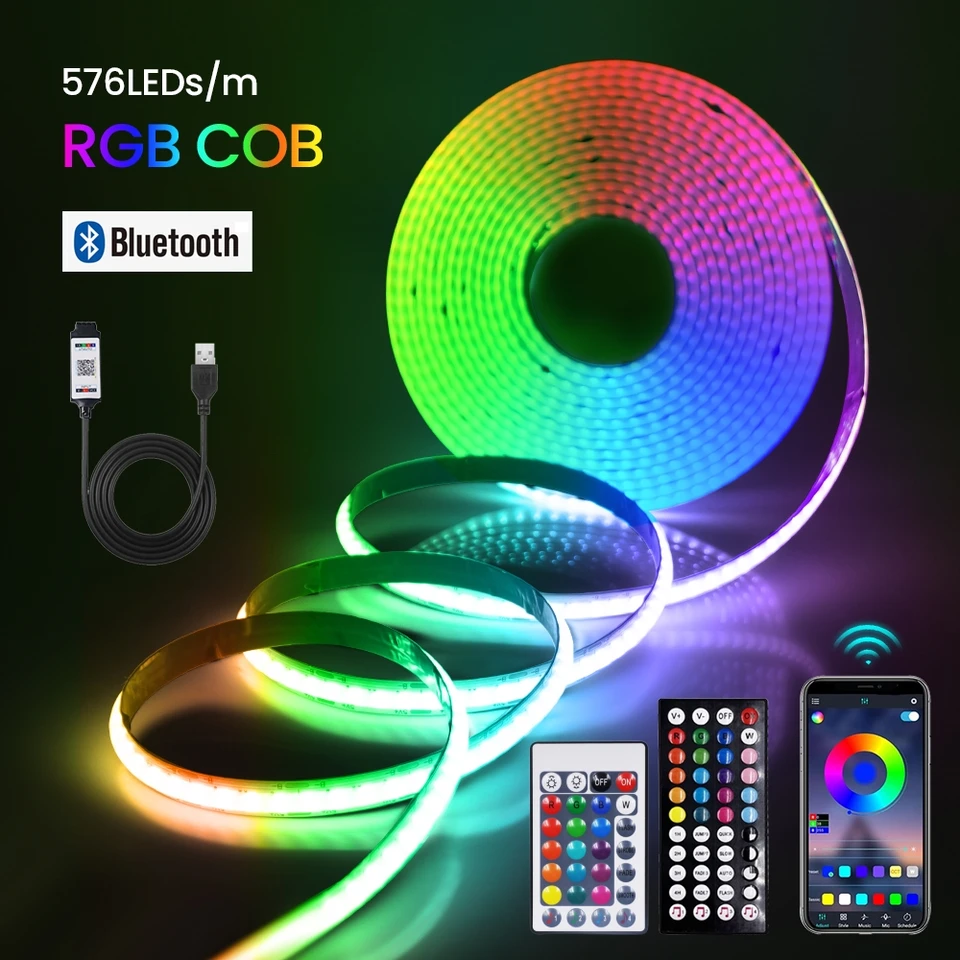 Bande LED 576 LED/m PAUTIX RGB Ruban LED COB 2m, USB 5V 1200LEDs Avec Contrôleur Bluetooth Smart APP Multicolore Bande Lumineuse LED Flexible Pour Chambre, Bar, TV, Cuisine, Fête, Décoration De Bricolage Bande 3 Mètres 576 LED/m 5V USB RGB néon LED bande Bluetooth App avec télécommande étanche néon bande RGB bande pour la décoration de la pièce à la maison éclairage Bande lumineuse LED RVB flexible avec contrôleur Bluetooth, rétroéclairage, USB, 5V, 576LED/m, cuisine, TV, ordinateur, joueur. 6,99€. Émettre de la couleur... Le paquet comprend : 1 x RGB COB bande lumineuse 1 x contrôleur LED Bluetooth 16 millions de couleurs RVB au choix, 20 modes multicolores, mode musique, fonction minuterie, vitesse de réglage des couleurs réglable, La couleur de la lumière est RVB, qui peut être modifiée et la luminosité peut être ajustée. 1 contrôleur LED Bluetooth. Vous pouvez choisir la version de la télécommande et du contrôleur que vous aimez en fonction de vos loisirs Vous pouvez choisir la couleur sur votre téléphone en fonction de vos loisirs Bande lumineuse RGB COB avec adhésif à l'arrière, qui permet une installation facile sur des surfaces sèches, propres et lisses telles que les murs, les plafonds et les meubles, le rétroéclairage TV Bande lumineuse RGB COB avec adhésif à l'arrière, qui permet une installation facile sur des surfaces sèches, propres et lisses telles que les murs, les plafonds et les meubles, le rétroéclairage TV