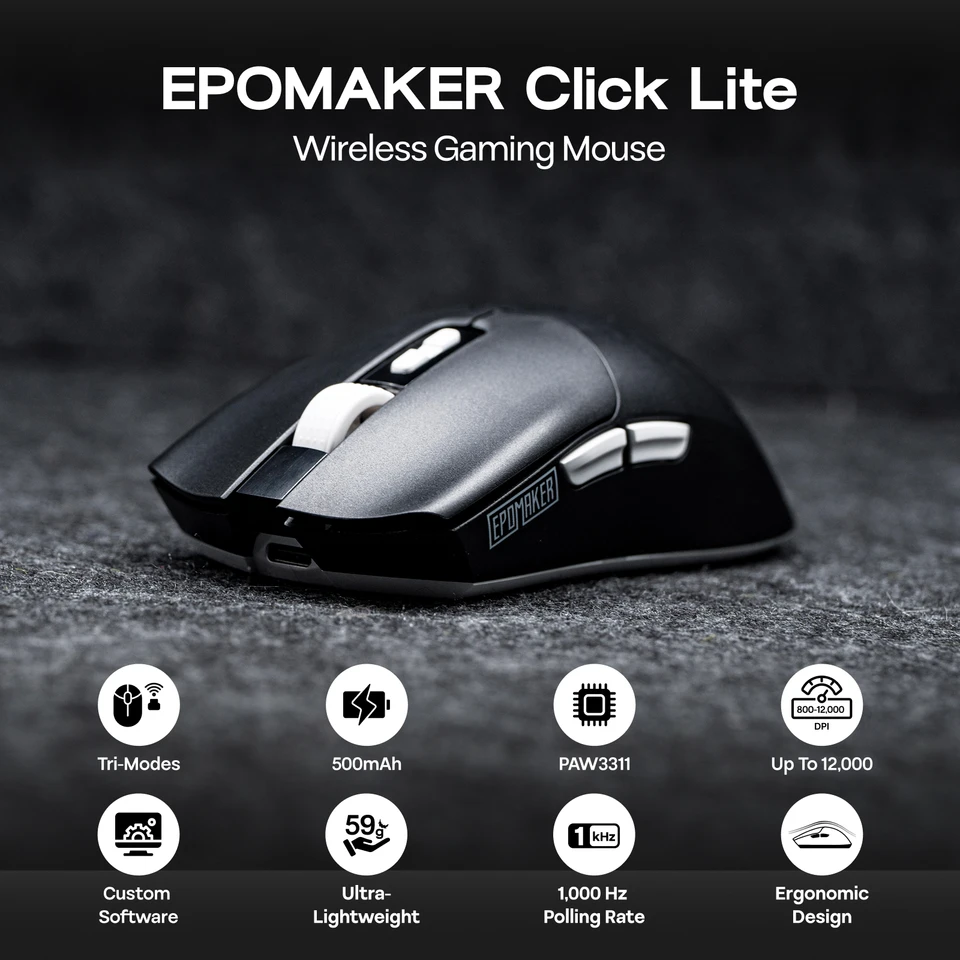 Cette souris légère avec un capteur PAW3311 avancé, DPI ajustable jusqu'à 12 000 pour une précision inégalée., Sa connectivité tri-mode (2., 4GHz/Bluetooth/USC-C) permet un basculement transparent entre appareils sans perte de performance. Capteur PAW3311 DPI 12000 EPOMAKER Click Souris Pour Jeux Inalambrique, Taux De Sondage 8KHz, Capteur Optique Ultimate PAW3950, 58g Ultraléger, DPI Réglable Jusqu'à 42000, 500mAh, Boutons Programmables Pour PC/Mac/Linux(Blanc Souris Sans Fil Gamer Batterie Rechargeable Longue Durée : La souris Click Lite n'est pas qu'un simple périphérique - c'est une véritable source d'énergie fiable. Un interrupteur tactile situé sous la souris permet de changer de mode instantanément, pour passer facilement entre votre PC portable, tablette ou ordinateur de bureau–parfait pour les configurations multitâche ou les workflows multiplateformes Conçue pour les joueurs compétitifs grâce à une précision, cette souris gaming allie réactivité, contrôle et stabilité inégalés, vous permettant de rester concentré sur votre cible et de dominer vos adversaires Équipée d'une batterie haute capacité de 500mAh, elle offre une autonomie exceptionnelle de 78 heures d'utilisation continue sur une seule charge. Epomaker CarbonX Et Click Lite : Nouvelles Souris Des Semaines d'Utilisation Sans Souci Autonomie de 78 Heures Conçue pour les professionnels assidus, les étudiants noctambules et les gamers passionnés qui ne s'arrêtent pas à 17h - la souris gaming sans fil Click Lite est pensée pour suivre votre rythme effréné. De plus, sa batterie rechargeable vous garantit une autonomie fiable dans les moments critiques Souris Gaming Click Lite Avec un DPI réglable de 800 à 12 000, une vitesse de suivi de 300 IPS et une accélération de 35G, elle garantit une précision absolue dans tous les scénarios. Cette performance remarquable suit le rythme de vos plus longues sessions de jeu, de travail ou de création, garantissant une concentration ininterrompue sur l'essentiel Souris de jeu - GAROSA - DM502 - Design ergonomique - DPI réglable... Souris Verticale Pour Gaucher - Sans Fil - Dpi Réglable 800 1200 1600... 1 Indicateur Intuitif 2 Capteur PAW3311 3 Ergonomie & Confort 4 DPI Réglable Design Léger 59g Épouse Parfaitement la Paume de Votre Main Plongez dans l'action avec cette souris gaming esports ultra-légère - conçue spécifiquement pour répondre aux exigences des joueurs compétitifs. Options de Connectivité Polyvalentes : Bénéficiez d'une utilisation fluide grâce à la connectivité tri-mode (2., 4GHz sans fil, Bluetooth et USB-C), offrant une flexibilité totale entre plusieurs appareils. Capteur Haute Précision PAW3311 avec DPI Réglable