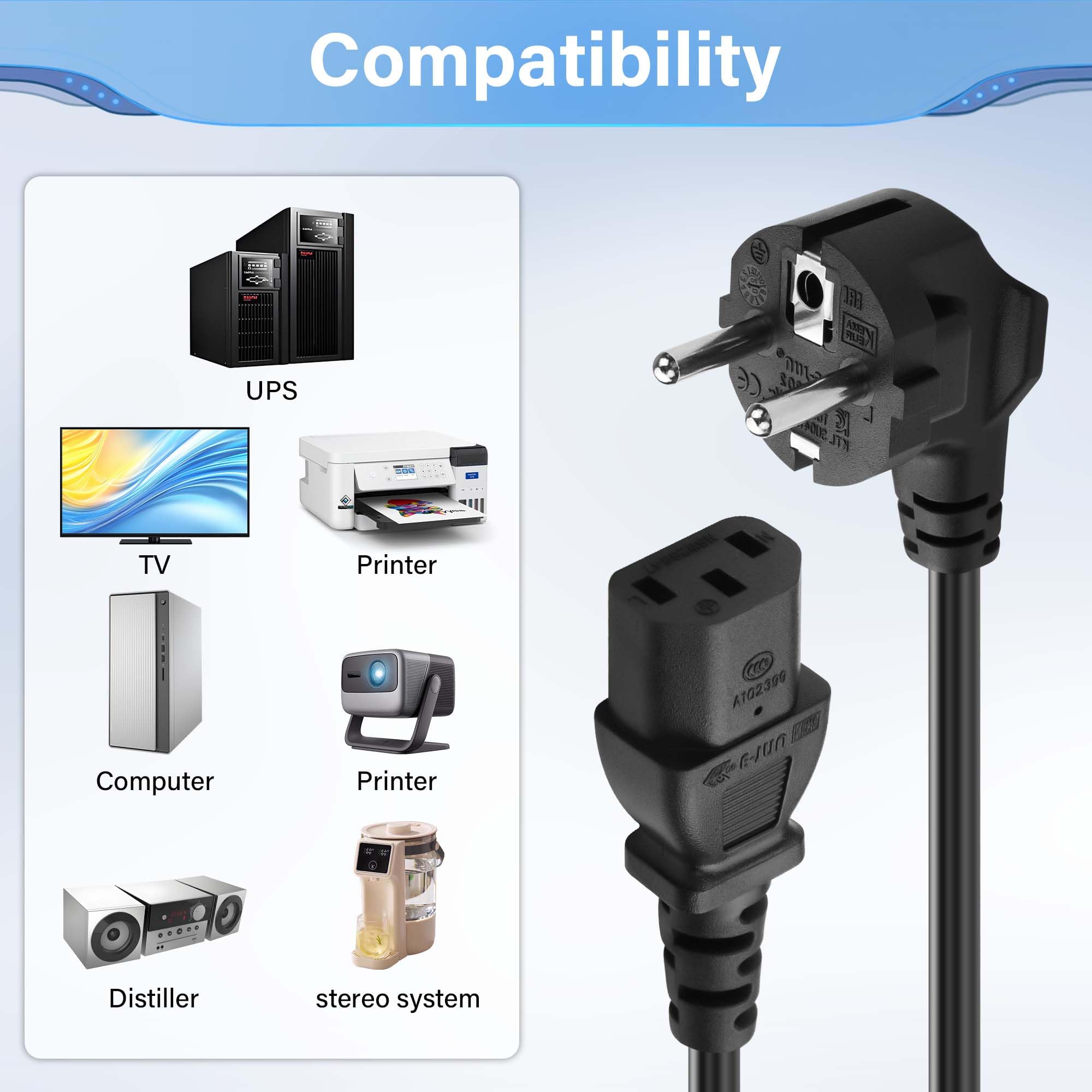 Un câble indispensable au bureau ou à la maison. Cordon Secteur Europe 10a 250v Câble D'Alimentation PC 1,8 M - Schuko CEE7 Vers IEC 320 C13 Câble Moniteur Imprimante Angle Droit CEE 7/7 vers IEC320 C13 Cordon d'alimentation européen Schuko ZIU Cordon d'alimentation IEC320 C20 vers double C13 IEC320 C20 à... Connexion fiable Pour téléviseurs, PC, ordinateurs, moniteurs, écrans, imprimantes, projecteurs, vidéoprojecteurs, etc. Convient à un usage privé ou commercial dans les bureaux et les entreprises. Achetez CERRXIAN 1FT CEE 7/7 vers IEC320 C13 Cordon d'alimentation européen Schuko, 3 Broches 18AWG 10A/250V Angle Droit Schuko Stecker à 90 degrés Câble... Grâce à sa gaine en PVC robuste, il offre une excellente protection contre l'usure, l'abrasion et les dommages éventuels, et assure une connexion durable et fiable pour vos appareils. Elle protège efficacement le câble contre les dommages causés par la flexion. Caractéristiques techniques : Couleur : noir Longueur : 0,3 m/1 ft Connecteur 1 : 90 degrés CEE7/7 alimentation européenne Connecteur 2 : 90 degrés IEC320 C13 Puissance : 1250 W C19 Cable d'alimentation 3 metres Schuko CEE7/7 Prise vers IEC 320 C19 PC Cordon Alimentation pour PDU UPS Un noyau en cuivre pur de haute qualité garantit des performances optimales, réduit le risque de surchauffe et offre une connexion électrique sûre et fiable pour vos appareils. Câble d'alimentation CA universel compatible avec divers équipements, y compris PC, moniteurs, imprimantes, projecteurs et bouilloires.