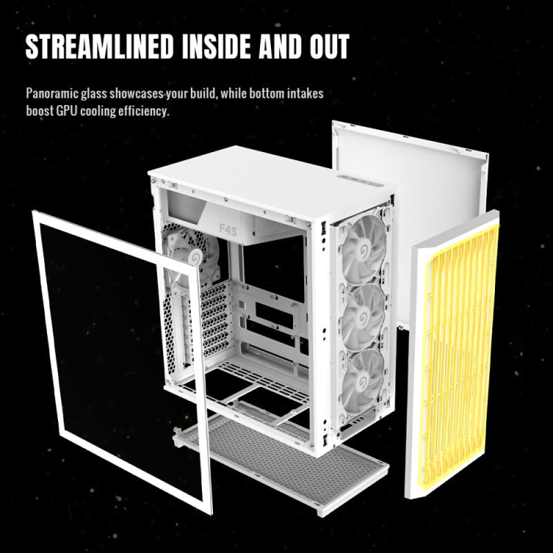 Okinos Boîtier PC ATX en Bois de chêne, 4 Ventilateurs de bo Gigabyte AORUS C500 Boîtier en Verre pour Tour oyenne ATX, Noir... Boîtier Pc 4 Ventilateurs Argb Pwm Boîtiers PC Boîtier Darkflash DY470 Noir Moyen Tour Aquarium 4 Ventilateurs ARGB Verre Trempé Boîtier Ventilateurs ARGB Aura Sync Refroidissement et éclairage de qualité supérieure - Équipé de 4 ventilateurs PWM ARGB préinstallés de 120 mm (3 à l'avant, 1 arrière) pour une circulation efficace de l'air. Comprend un support de carte graphique et une prise en charge des GPU à 7 emplacements pour un montage facile des composants. GADIAS Aura GC2 Elite ARGB Boîtier PC Gaer ATX Tour oyenne, Panneau... Construction robuste et design de qualité supérieure - Boîtier en acier solide (0,8 mm/0,6 mm) avec verre de sécurité latéral de 4 mm d'épaisseur. Compatibilité étendue : compatible avec les cartes mères ATX/backplane (BTF), les refroidisseurs tour de 169 mm et les radiateurs 240/280/360 mm. Prend en charge les baies GPU directes et les configurations matérielles polyvalentes pour les systèmes de jeu/performance. Le compartiment d'alimentation monté en haut et à l'arrière optimise l'espace.