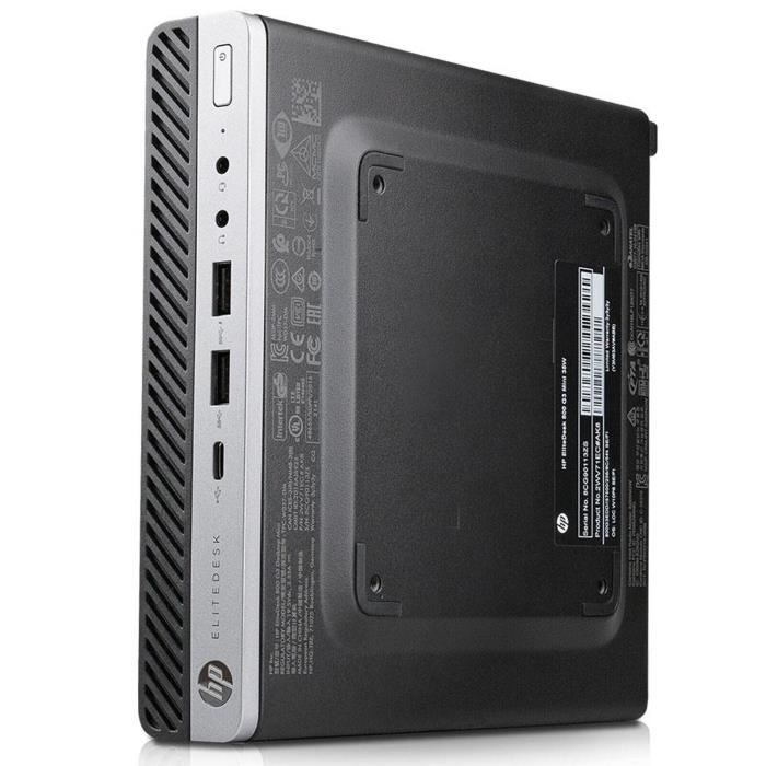 Ordinateur de bureau - Pack HP EliteDesk 800 G4 DM - 16Go - 1 To SSD Rechercher les informations d'assistance et de dépannage, y compris les logiciels, pilotes, caractéristiques et manuels pour votre Mini-ordinateur de bureau HP EliteDesk 800 G5 HP EliteDesk 800 Reconditionné HP Elitedesk 800 G3 Mini PC De Bureau, Windows 11 Pro, 16 Go De RAM Mini PC I5 Processeur Intel Core i5-7400 T 2., 40 Ghz (jusqu'à 3., 00 Ghz en Turbo Boost - 4 Core 4 Thread) Carte vidéo intégrée Intel HD Graphics 630 Mémoire RAM 8 Go DDR4 SODIMM – Mémoire maximale 32 Go SSD 240 Go 2,5 SATA Autres spécifications : Avant : 1 x casque., 1 microphone., 1 x USB 3., 1 Type C., 2 x USB 3., 0., Arrière : 4 x USB 3., 1., 2 ports d'affichage (vidéo)., 1 port LAN RJ-45 10/100/1000., 1 alimentation (présente alimentation externe d'origine ou compatible - 65 W / 19,5 V / 3,33 A - 7,4 mm - 5,0 mm). Dimensions de l'ordinateur : 18 x 18 x 4 cm. Ordinateur mini 💻 Modèle : HP ELITEDESK 800 MINI G3 HP ELITEDESK 800 MINI G3 CPU : Intel Core i5-7500T @ 2.90 GHz Jusqu'à 3.10 GHz Turbo (7 ème génération) 6 MB Intel® Smart Cache 4 Coeures / 4 Threads Mémoire Vive : 8 Go - DDR4 Disque dur : 256 Go SSD Carte graphique : Intel® HD Graphics 630 Carte son : Intégrée Réseau : Realtek RTL8151GD - Gigabit Ethernet Système d... Intérieures: 2 emplacements RAM SODIMM DDR4 (disposition des banques de RAM variable). Processeur Intel Core i5 – 7400T (jusqu'à 3,00 GHz en Turbo Boost – 4 Core 4 Thread) + mémoire RAM 8 Go DDR4 + SSD 240 Go Emballé dans un carton neutre, dans un emballage d'alimentation et un câble. Connectivité frontale : 1 casque + 1 microphone + 1 port USB 3., 1 type C + 2 ports USB 3., 0 | arrière : 4 ports USB 3., 1 + 2 ports d'affichage (vidéo) + 1 port RJ-45 LAN 10/100/1000