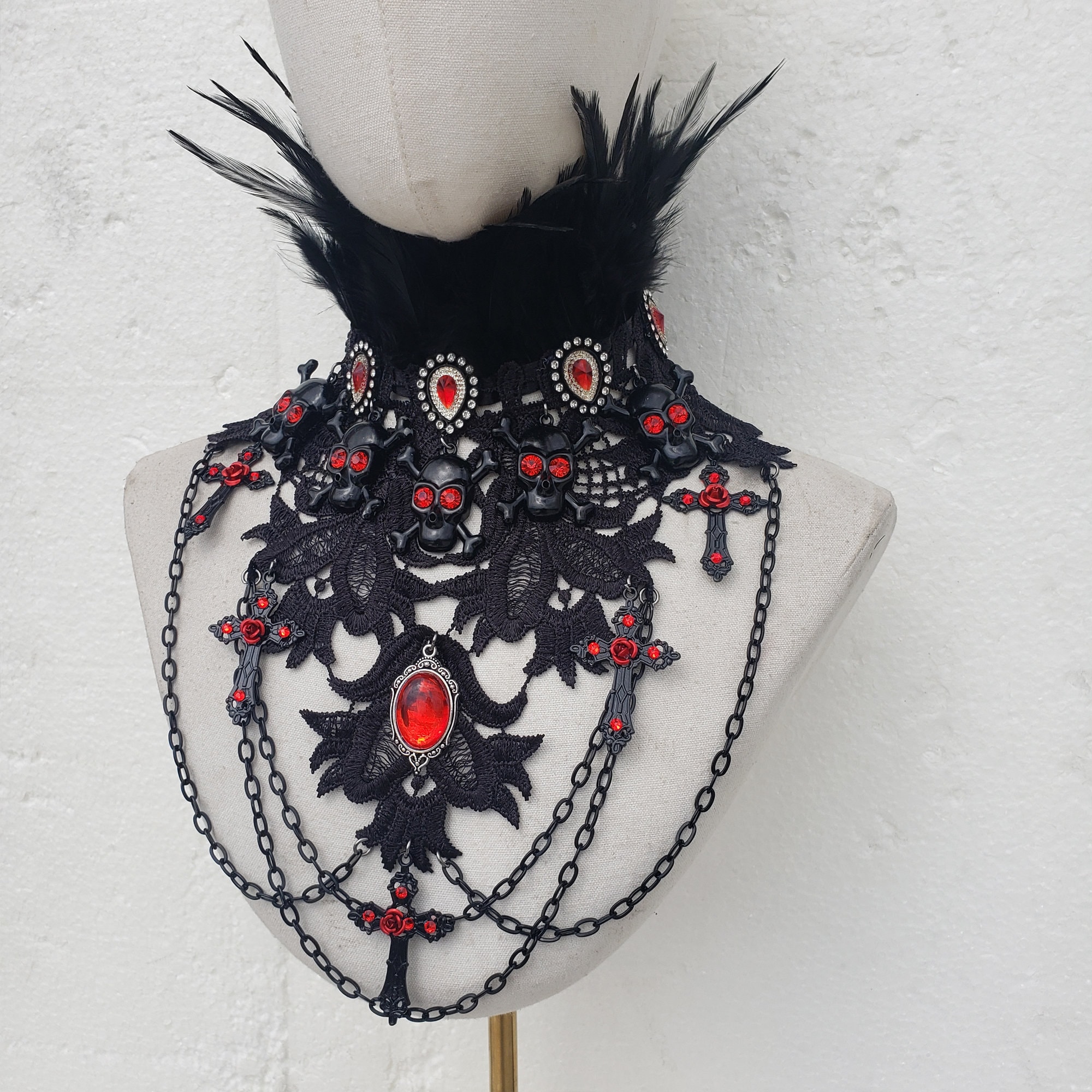 Collier gothique – Tour de cou noir avec pierre et croix Bijoux Gothique Steampunk Collier Bracelets KEQAR 5 PCS Collier Choker Gothique Et Bracelets Bijoux Accessoire Halloween Lolita Gothique Dentelle Découvrez une sélection de bijoux goth et punk pour femme. Trouvez votre bonheur parmi des chokers à piques, colliers croix harnais ou pendentifs oeil occulte Matériaux de qualité supérieure : Cette collier d'Halloween est fabriqué à partir de dentelle fine, de pierres artificielles, de strass et d'un alliage robuste, offrant une apparence élégante et durable pour compléter vos tenues festives Design sécurisé : Équipé d'un fermoir mousqueton pratique, ce collier est facile à mettre et garantit un maintien sûr, vous permettant de le porter en toute tranquillité lors de vos événements Confort optimal : Conçu pour être doux pour la peau, ce collier offre un confort exceptionnel sans provoquer de réactions allergiques, ce qui le rend parfait pour les peaux sensibles Style gothique élégant : Idéal pour les femmes et les jeunes filles recherchant un look Lolita gothique raffiné, cet accessoire saisissant est parfait pour Halloween et d'autres occasions spéciales Cadeau polyvalent : Une excellente idée cadeau pour Halloween, Noël, la Saint-Valentin ou d'autres moments uniques – un accessoire original qui saura ravir vos proches Collier Et Bracelet Gothique En Dentelle, Pierres Artificielles Et Alliage - Chaine De Cou Victorienne Steampunk Avec Pendentif Rétro Roue Dentée Pour Femme... Style gothique élégant : Idéal pour les femmes et les jeunes filles recherchant un look Lolita gothique raffiné, cet accessoire saisissant est parfait pour Halloween et d'autres occasions spéciales Confort optimal : Conçu pour être doux pour la peau, ce collier offre un confort exceptionnel sans provoquer de réactions allergiques, ce qui le rend parfait pour les peaux sensibles