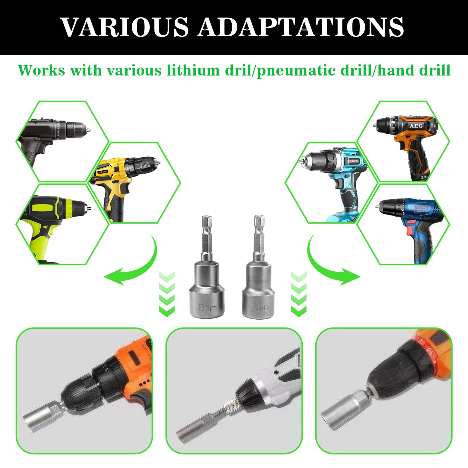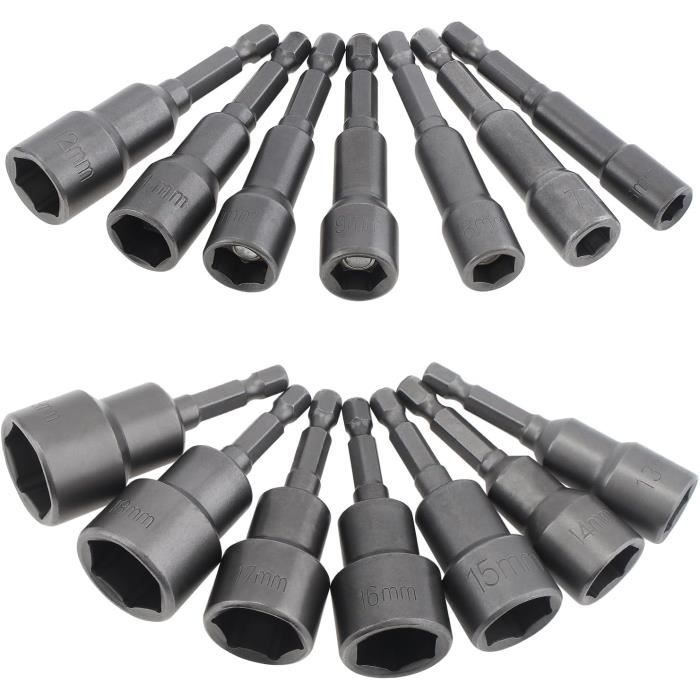 Douille Visseuse Adaptateur Embouts Douille Hexagonale 1-4 6-19Mm Pour Perceuse À Main... Tige hexagonale 1/4 : parfaite pour visseuse sans fil et perceuse, permet d'économiser beaucoup de temps et fonctionne plus facilement qu'une clé à cliquet. Champ d'application : idéal pour le bricolage, le travail du bois, les pièces automobiles, la réparation de machines professionnelles, convient pour les visseuses pneumatiques, les visseuses électriques, les perceuses et plus encore. Douilles Magnétiques STCRERAG 12 PCS Douille Visseuse Magnétique 6-19mm Douille Visseuse à Choc En Acier Allié Au Embout Douille Visseuse 【Magnétisme puissant】Les pointes magnétiques maintiennent les vis en place en toute sécurité, facilitent et accélèrent le travail. Magnétisme puissant]Les pointes magnétiques maintiennent les vis en place en toute sécurité, facilitent et accélèrent le travail. Tige hexagonale 1/4 : parfaite pour visseuse sans fil et perceuse, permet d'économiser beaucoup de temps et fonctionne plus facilement qu'une clé à cliquet Contenu de l'emballage : Lot de 14 douilles. Sporgo Jeu de douilles 1/4" : 6-19 mm 14 pièces de douilles magnétiques pour visseuse sans fil