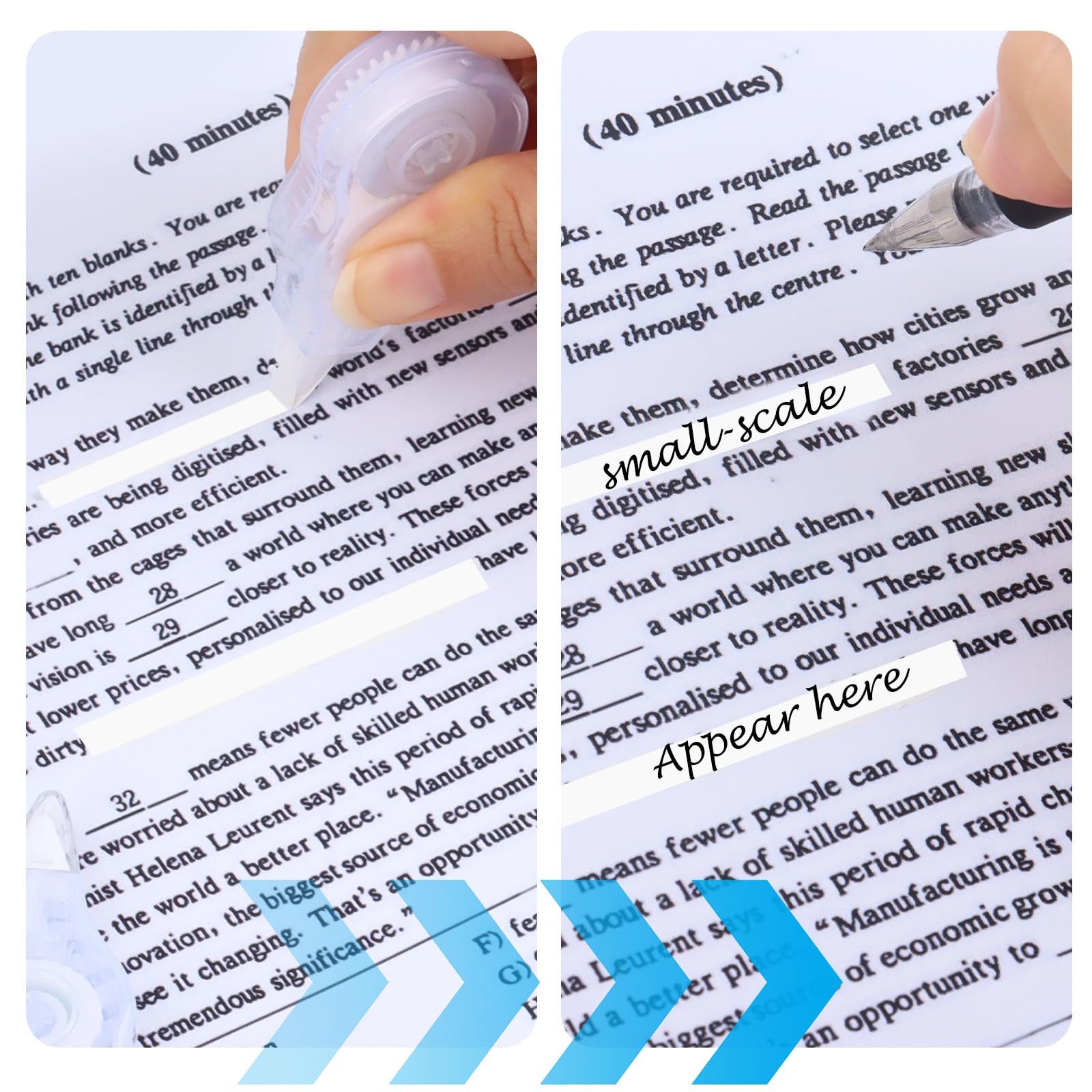 Correcteur Souris Bureau 12 Rouleaux Correcteurs Mini - 4m X 5mm - Ruban Correcteur Sans Séchage Pour école Et Bureau Accessoire Papeterie Avec une bonne prise en main, ses allures de souris dissimulent jusqu'à 5 mm de texte en hauteur et 10 m de long. Et comme il n'y a pas de petites économies, le roller correcteur se vend également par pack de 2 à 10 Typex Souris Correcteur 6 PCS Rubans Correcteurs,Mini Ruban Correcteur Bande De Correcteur Sans Séchage pour un usage quotidien. Facile à utiliser : retirez le couvercle avec le côté incurvé vers le haut, collez le haut de la gomme à ruban à un angle de 45 degrés sur la partie que vous devez remplacer, puis appuyez doucement sur le ruban blanc et faites-le glisser vers l'arrière, vous pouvez rapidement et facilement couvrir la faute d'orthographe et écrire immédiatement sans attendre. 12 Pièces Rubans Correcteurs, 12m x 5 mm Souris Correcteur Blanc avec Capuchon, Roller de Correction pour École Bureau Fourniture Scolaire Fourniture Bureau... Le ruban correcteur est un accessoire essentiel dans les bureaux et les écoles, permettant de dire adieu aux gribouillis ou aux ratures désordonnées et de corriger soigneusement les erreurs. CORRECTION INSTANTANÉE : Utilisez ce ruban correcteur, rouleau correcteur pour corriger vos fautes de frappe instantanément, aucun temps de séchage requis. Vous pouvez écrire dessus avec un crayon, un stylo, un marqueur, etc. Confortables et faciles à utiliser, les mini rubans correcteurs sont un outil indispensable pour les écoles, les bureaux, les studios d'art et les projets d'artisanat.