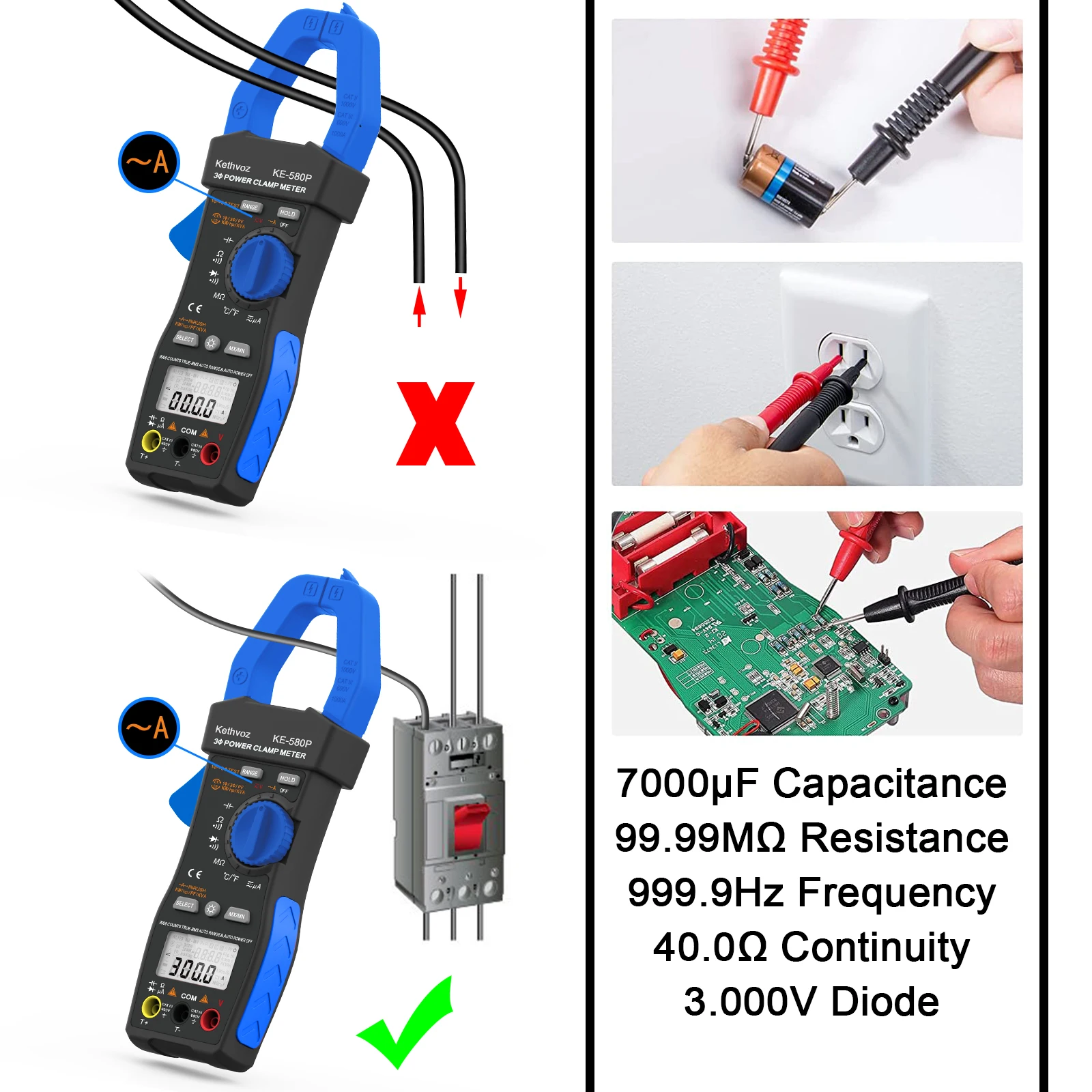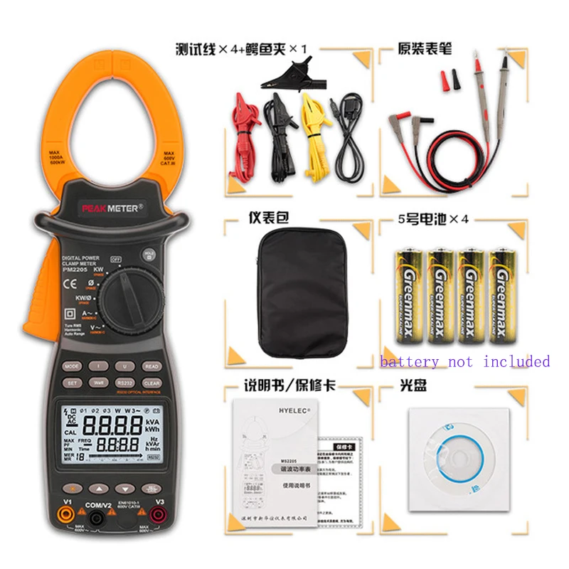 MASTAcetone-Pince ampèremétrique numérique, AC, DC Voltage, MS2115A, MS2115B, MS2015A, MS2015B, MS2008A, MS2008B, MS2026, MS2026R, MSneuvième A, MSneuvième C, MS2109A Testeur électrique Triphasé PINCE AMPEREMETRIQUE MESURE DE PUISSANCE Pince Ampèremétrique Enregistrement Données Pince ampèremétrique de puissance Pince Ampèremétrique MS2205... SPÉCIFICATIONS PLAGE PRÉCISION Tension CA : 0,1 à 600 V, ±(1,2 % + 5) Courant CA : 0,1 à 1 000 A, ±(2,0 % + 5) Puissance active : 0,1 kW à 600 kW, ±(3,0 % + 5) Puissance apparente : 0,1 kVA à 600 kVA, ±(3,0 % + 5) Puissance réactive : 0,1 kVAr à 600 kVAr, ±(3,0 % + 5) Facteur de puissance : 0,3 à 1, ±(0,02 % + 2) VBESTLIFE testeur de pince Pince ampèremétrique automatique numérique... Pince ampèremétrique | Haute précision : avec une classe de précision de 1,2 % + 5, le MS2205 fournit des mesures précises pour les tâches électriques critiques. Fonction d'enregistrement des données : avec 100 groupes de données, enregistrez et rappelez les mesures pour une analyse détaillée et un dépannage.