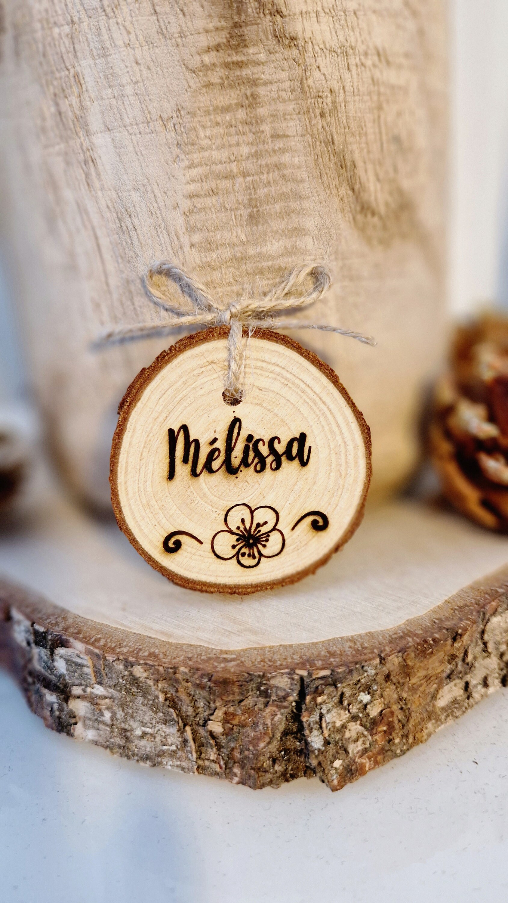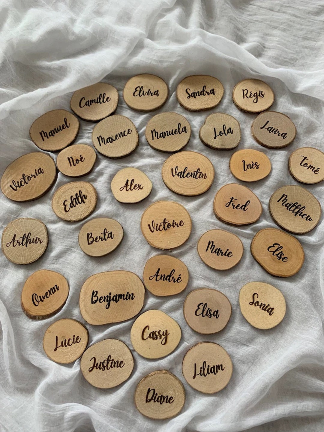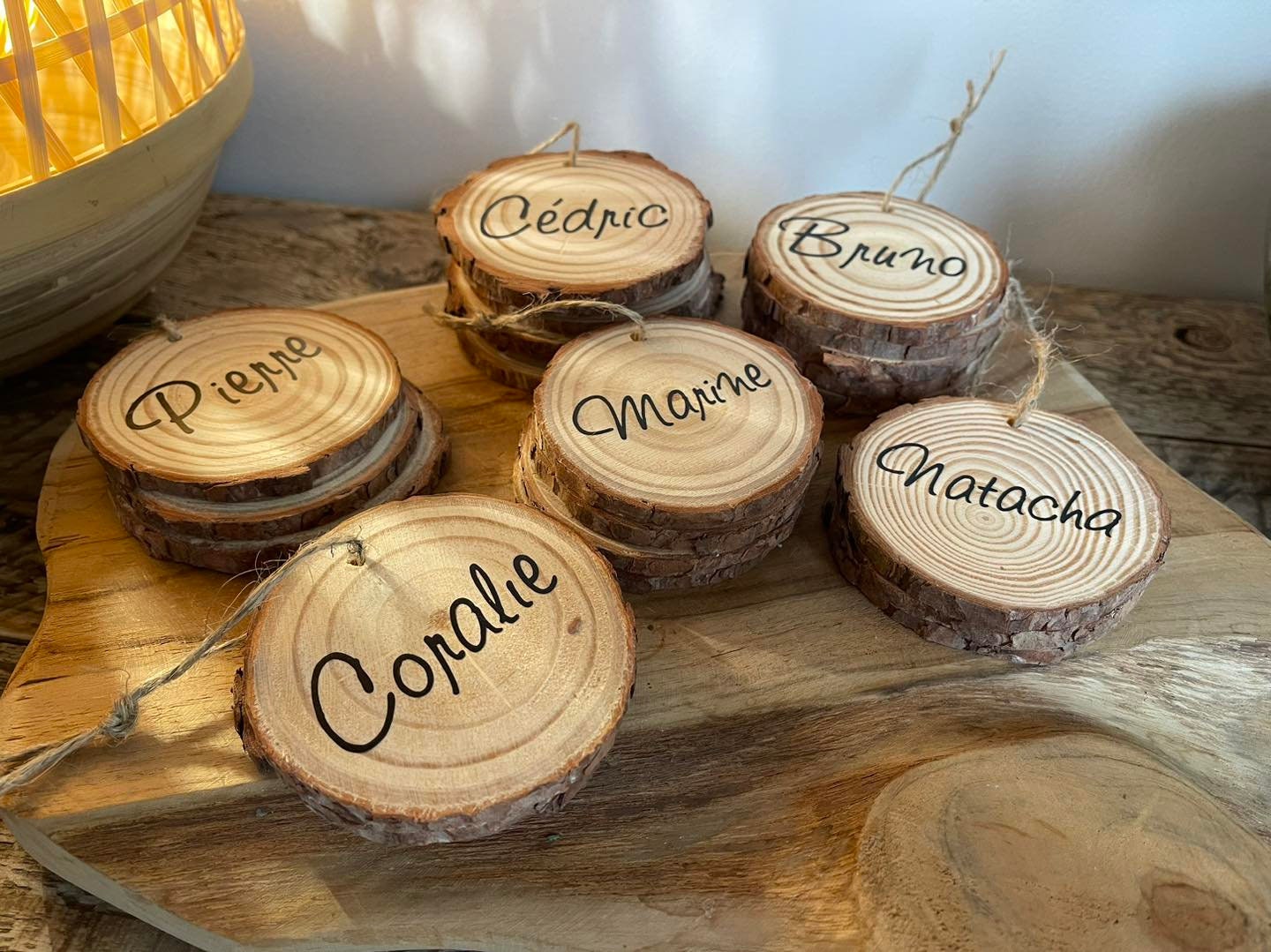 Marque-place Rustique Mariage Baptême MARQUE-PLACE RONDIN BOIS CHAMPÊTRE 5X2,5CM NATURE Mariage Champetre Rondins de Bois Marque Place avec Fente x6 | Décoration Vintage 9 Marque-places rondins en bois entre 2 et 4 cm, décoration... Chaque rondin est unique avec ses propres motifs naturels, créant ainsi une décoration personnalisée et chaleureuse. La surface lisse permet d'écrire facilement les noms de vos convives avec un simple feutre stylo, ajoutant une touche personnelle à votre mise en place. Ces marque-places rustiques s'intègrent parfaitement dans une décoration de style champêtre ou bohème. Chaque lot comprend 10 rondelles de bois soigneusement découpées, mesurant environ 6 à 7 cm de diamètre, parfaites pour noter les noms de vos invités. ORIGINE: Bois issu de forêts locales certifiées PEFC, chaque rondin présente des motifs uniques et naturels POLYVALENCE: Idéal pour les mariages, baptêmes, anniversaires et réunions dans un style rustique et bohème DIMENSIONS: Rondelles de bois naturel de 6 à 7 cm de diamètre, parfaites pour l'écriture des noms d'invités Personnalisez votre table avec des marque-places uniques ! Ils apporteront le côté champêtre à votre déco. Gravure sur des tranches de bois naturel