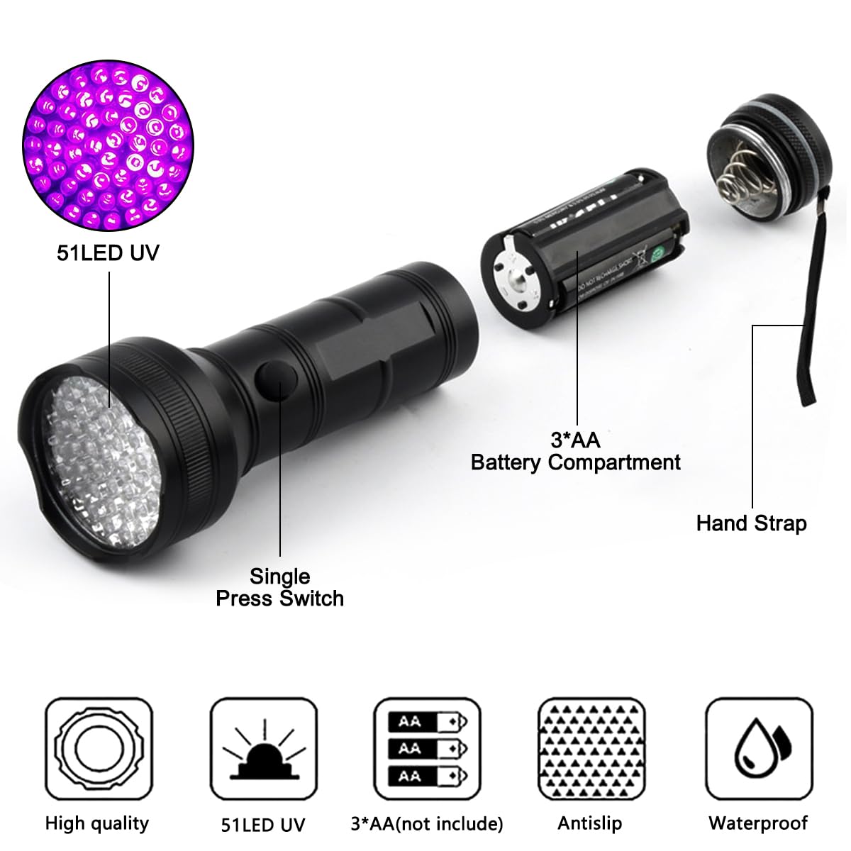 Pourquoi choisir ? Sécurité au niveau de la banque : détecteur de contrefaçon en euro. Précision UV de 365 nm : la lumière ultraviolette professionnelle à ondes courtes révèle instantanément les détails cachés : authentifie les antiquités (réparation de porcelaine/timbres). L'ABS résistant aux chocs résiste aux chutes de 3 m MIL-STD-810G. Durée de fonctionnement : 2 à 4 heures UV. Lampe Torche Uv 365Nm Lumière Noire, Led Super Mini Lampe De Wood Vérifie instantanément les hologrammes et numéros de série EURO 20/50/100., Analyse de sécurité cosmétique : expose les agents fluorescents cosmétiques. Chargement de la batterie : rechargeable. La lampe de poche UV 365 nm est conçue pour des détections précises, bien qu'elle soit moins lumineuse que les lampes à 395 nm. Elle est idéale pour identifier... Le mode écologique prolonge la durée de vie jusqu'à plus de 500 cycles. Caractéristiques techniques : Longueur d'onde : 365 ± 3 nm (UV). La longueur d'onde identifie les œufs de teigne et de puces sur la fourrure. Lampe Lumière Noire Portable POCKETMAN SDT1362 Lampe De Poche LED UV 395 Nm Lumière Noire Détecteur De Lumière UV Pour Taches D'urine D'animaux Domestiques Lampe Uv Eletorot Darkbeam UV 365 nm Lumière noire mini et puissante – Urine de chien, taches, argent, ambre, fluorescence, détecteur de fuite AC Remarque importante : Pour votre sécurité, veuillez ne pas regarder directement la lumière UV pendant une longue période. ! ! Caractéristiques Charge rapide de type C (2 heures complètes) avec protection contre la surchauffe.