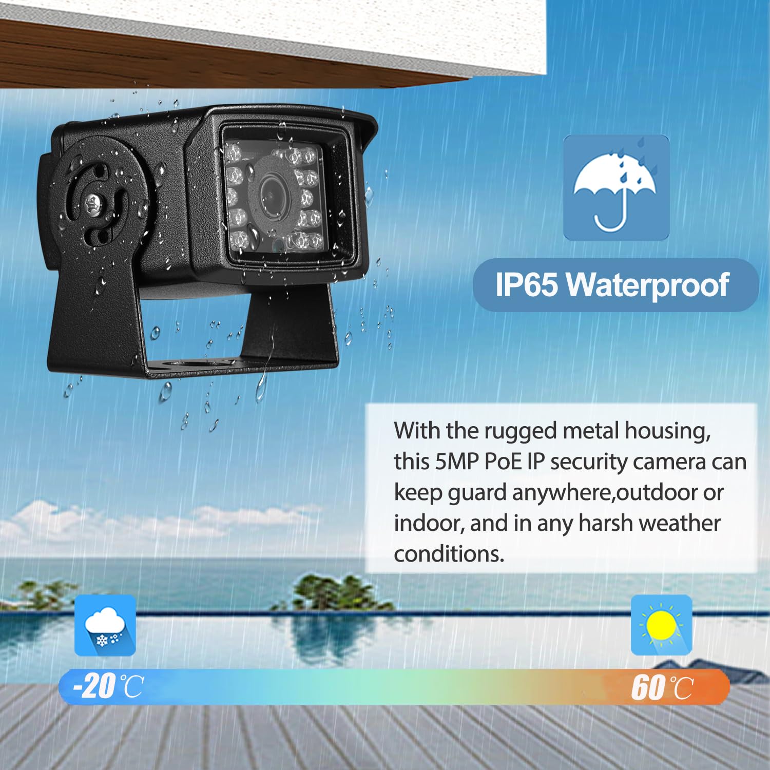 Et il peut également être utilisé comme caméra réseau non POE, car il existe également une interface d'alimentation auxiliaire, qui peut être alimentée par une alimentation 12V 2A ordinaire. Caméra IP Mini Poe 5Mp, caméra étanche IP65 étanche 18 LED vision... 〖Économisez de l'espace de stockage, double encodage H., 265/H., 264〗 Par rapport à H., 264, H. 265Taux de compression en sortie : 128 Kbps ~ 8 MbpsStockage : NVR ou PCAdresse IP : dynamique (par défaut)/statiqueAlarme intelligente : détection de mouvement, alarme par e-mailProtocoles pris en charge : HTTP, TCP/IP, RTSP, RTP, UPNP, SMTP, DHCP, DDNS, DNS, FTP, NTPProtocole d'entrée : compatible avec le port NVR O nviif standardNVR port O nviif : 80Fonctions générales : double flux, protection par mot de passe, masquage vidéoEthernet : Ethernet 10 M/100 Mbit/s (RJ-45)généralTempérature de fonctionnement : -20°C~60°CAlimentation : POELumière infrarouge : 18 pcs LEDDistance de vision nocturne : 5-10 mMatériau de la coque : métalTaille : 8 x 6,5 x 6,7 cm (L*l*H)Poids : 0,3 kgContenu du colis:1 * appareil photo1 * manuel d'utilisation1 * jeu de vis1 * capuchon étanche Surveillance Intérieure Extérieure Détection Mouvement REVODATA Mini Caméra IP POE UltraHD 4K (8MP), Objectif Zoom Manuel 2.8 Camera 4k Elle peut fonctionner dans diverses conditions météorologiques et vous fournir des images claires dans l'obscurité. ★La caméra IP génère plus de chaleur, et le boîtier de cette caméra est petit, donc après avoir utilisé la caméra pendant un certain temps, vous sentirez que la caméra est très chaude. 〖4K 8MP Ultra HD Resolution〗Cette caméra IP utilise un capteur CMOS 1/2,7'' pouce haute résolution 4K 8,0 mégapixels avec 20 images par seconde, ce qui vous permet de voir des images et des détails plus clairs. 265 nécessite la moitié de la bande passante pour transmettre la même qualité d'image, et seulement la moitié de l'espace de stockage pour la même qualité d'enregistrement. La détection de mouvement n'enregistre que lorsqu'un mouvement est détecté, ce qui permet d'économiser plus facilement de l'espace de stockage que les autres caméras. 265☆ Fonction P2P cloud(not support audio function)☆ Résistance à l'eau IP65☆ Prise en charge de la détection humanoïde et de la fonction d'alarme☆ Prise en charge de l'interface web des navigateurs IE6., 0 et supérieurs☆ Vision de jour et de nuit 10M IR☆ L'application pour téléphone portable “Linklemo” assure la surveillance☆ Mini caméra☆ Coque en métalCaméraModèle : I704-P-HS82Résolution : 3840 x 2160P Appareil photo 5,0 mégapixelsCapteur : Hi3516CV610+GC8613Éclairage minimal : 0,005 Lux @ (F1., 2, AGC activé)Fréquence d'images : 20fpsObturateur : 1/25 s - 1/100 000 sObjectif : 3,6 mmCommutateur jour/nuit : automatiqueFormat de compression : H., 264 / H. 〖Prend en charge POE et DC〗Modèle POE intégré, prend en charge la fonction POE 48V 802., 3af (Power over Ethernet), réduit les problèmes de câblage. 4K 8MP Ultra HD Resolution〗Cette caméra IP utilise un capteur CMOS 1/2,7'' pouce haute résolution 4K 8,0 mégapixels avec 20 images par seconde, ce qui vous permet de voir des images et des détails plus clairs Et ne vous inquiétez pas, c'est normal et sûr, nous espérons que vous pouvez le comprendre. 〖Large gamme d'applications〗 Où que vous soyez, vous pouvez visualiser et lire à distance les images de surveillance lorsque vous en avez besoin. Cámara IP PoE 4K 8MP Mini PTZ domo PoE para exteriores, panorámica de