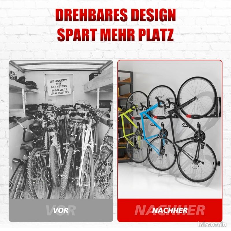 StoreYourBoard Support ural pivotant pour vélo, crochet de suspension Cette conception vous permet d'économiser du temps et des efforts lors du stockage et du retrait de votre vélo. Rangement Vélo Garage Gain Place PRO BIKE TOOL Support Mural Pour Vélo, Peu Encombrant Et Réglable Support Vélo Pivotant Mural Son mouvement latéral de -85° à +65° rend l'accès et le retrait de vos vélos faciles et efficaces, presque comme tourner les pages d'un livre. Idéal pour ranger plusieurs vélos et garder le garage bien rangé. La conception flexible du porte-vélos répond à vos besoins de rangement pour tous types de vélos, quelle que soit leur taille ioke Support ural pivotant pour vélo – Porte-vélo d'intérieur peu... Cinq minutes d'installation : des instructions détaillées étape par étape sont incluses. Il est compatible avec les types de vélos universels : vélos de route, vélos hybrides, vélos de cyclo-cross, VTT, vélos BMX, etc., jusqu'à 30 kg. Important : montez le support mural de vélo uniquement sur un mur stable, une poutre, une maçonnerie ou un mur en béton. Le porte-vélos mural offre une solution de rangement minimaliste avec un design innovant. Le support de vélo peut être placé dans les appartements, les maisons, les garages et les hangars. 【Design pivotant d'angle】 Design pivotant, support mural pivotant pratique pour stores de vélos à gauche, au centre ou à droite à 3 angles permettant de tirer facilement le loquet, ce qui en fait un rangement pratique dans le garage ou la salle de vie.