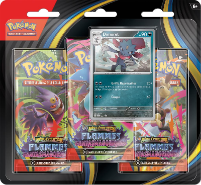 POKEMON - FLAMMES FANTASMAGORIQUES - BLISTER DE 3 PAQUETS - FARFURET (FRENCH) ME02 - MÉGA-ÉVOLUTION JCC Pokémon : Collection Ultra-Premium Méga-Dracaufeu X-ex pour Flammes... Coffret Premium PROCHAINEMENT : Pokémon - Booster Méga-Évolution : Flammes Fantasmagoriques Etb Pokemon Francais Déterminés à montrer leur courage, Méga-Scarhino-ex, Méga-Lockpin-ex et d’autres Pokémon se préparent à tout donner dans l’extension Méga-Évolution – Flammes Fantasmagoriques du JCC Pokémon ! Vous trouverez également 3 boosters Méga-Évolution – Flammes Fantasmagoriques du JCC Pokémon. Voici le contenu de ce blister aléatoire : 3 boosters de l'extension Flammes Fantasmagoriques; 1 carte promo brillante : Farfuret ou Dimoret... Préparez-vous à des combats enflammés ! (Chaque booster contient 10 cartes, 1 Énergie de base et 1 carte à code pour le JCC Pokémon Live. Enrichissez votre collection avec ces 3 boosters. Les cartes varient par booster., )