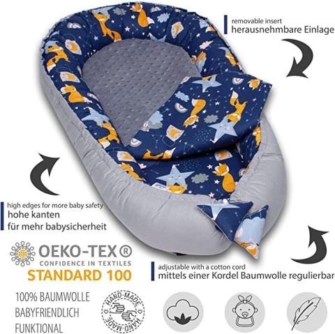 Pratique et facile d'entretien : lavable en machine à 40 °C, conserve sa forme et sa couleur même après de nombreux lavages, idéal pour un usage quotidien chez les jeunes familles. Cocon Bebe Naissance PaLulli XXL Nid Bébé 100% Coton Réversible Baby Nest Le nid pour bébé PaLulli a été conçu avec amour pour offrir aux nouveau-nés et aux bébés une atmosphère apaisante et sécurisée, tout comme dans le ventre de maman. Torchon en Coton Nid d'Abeille 70cm Blanc Facile d'entretien et durable au quotidien, le nid pour bébé PaLulli se lave facilement en machine à 40 °C, reste indéformable et a l'air neuf même après de nombreux lavages – Idéal pour les familles qui accordent une grande importance à l'hygiène et à la manipulation pratique. Le nid pour bébé PaLulli accompagne ainsi votre enfant en toute sécurité et confortablement du nouveau-né à la petite enfance. Nid bébé PALULLI, nid Douillet Multifonctionnel avec Matelas... Le nid est fabriqué en 100 % coton de qualité supérieure, respirant et particulièrement doux pour la peau sensible de bébé. Le design ergonomique imite l'étanchéité familière et assure un sommeil paisible et profond ainsi que le bien-être de votre enfant. Confort comme chez maman : le tour de lit PaLulli offre à votre bébé sécurité et proximité en imitant l'étroit familier dans l'utérus de sa mère et en lui assurant un sommeil paisible et réparateur. Cocon Bébé PaLulli 100% Coton Mousseline - Nid Douillet 100x60cm Marron Nid Douillet Nouveau-né Matériaux de qualité supérieure pour une sécurité maximale. Qualité supérieure certifiée - Fabriqué à la main en 100 % coton respirant de qualité supérieure avec certificat Oeko-Tex Standard 100 - Particulièrement doux et sans danger pour la peau sensible de bébé.