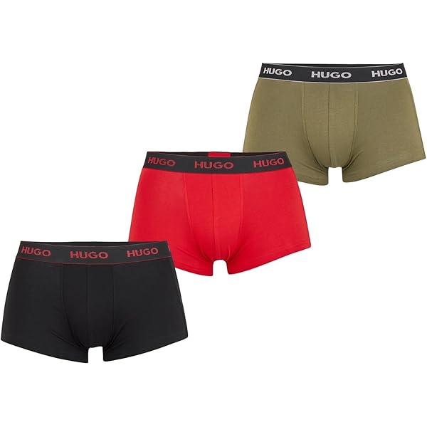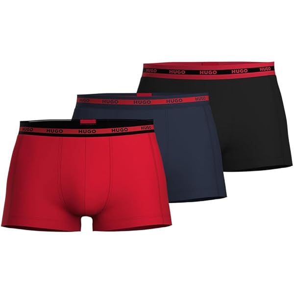 HUGO Trunk Triplet Pack Caleon Boxeur, Blanc 100, S (Lot de 3 Boxers Hugo Pour Homme HUGO Trunk Triplet Pack Caleçon Boxeur, Noir2, XS Homme Boxers HUGO Hommes Chaque modèle à taille standard est confectionné en jersey stretch ultra-doux pour un confort optimal. Ce produit est en partie fabriqué à partir de coton biologique Chaque tenue a besoin d'une base élégante parfaite. HUGO - Lot de trois boxers courts en coton stretch avec taille logotée... Élastique voyant à la taille, Taille basse Les sous-vêtements HUGO offrent un confort optimal et un style souverain, que ce soit dans des couleurs distinctives ou classiques ou avec les imprimés frais de la saison.