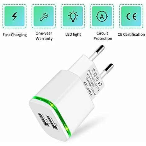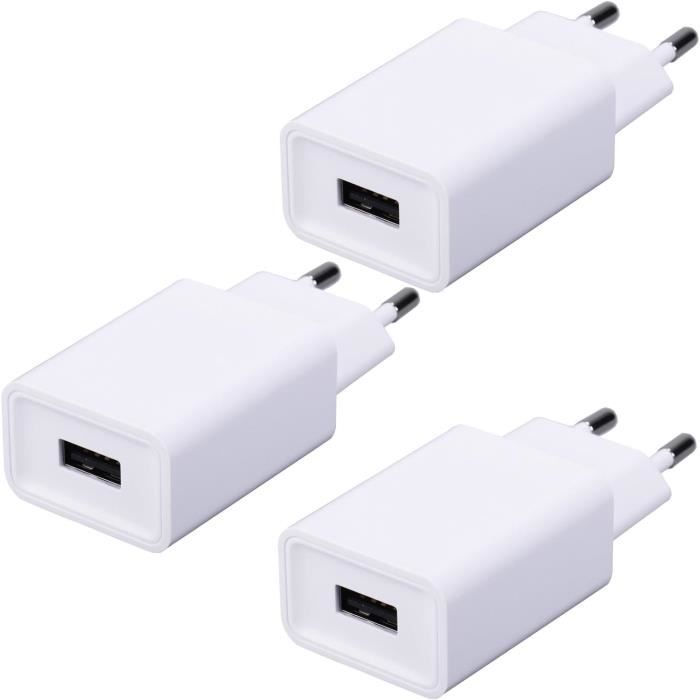 LUOATIP Chargeur Prise USB Secteur, 2-Pack 2.1A 5V 2 Ports Adaptateur Sa fonction de charge sécurisée intégrée protège efficacement votre appareil contre les surintensités, la surchauffe et la surcharge. Secteur Usb C Chargeur 5V 2A, 1 Pack Chargeur USB Secteur Adaptateur, Prise Chargeur USB 5V 2A Il est également doté de fonctions de protection contre les surcharges et les surintensités pour éviter toute perte de courant et garantir une charge sûre à tout moment. Installation simple et rapide : branchez l'adaptateur secteur à une prise murale et connectez vos appareils à l'aide d'un câble USB-A pour lancer la charge... iJiZuo Chargeur Secteur, Adaptateur USB 5V / 2A, Power Adapter Adaptateur USB Compatible avec iPhone 13 12 Pro Mini Max 11 X Samsung S22 - Blanc Faits saillants principaux [Tension totale] Chargeur Adaptateur USB Avec un courant de sortie total de 5V 1A, Vous pouvez charger en toute sécurité votre Chargez votre appareil Il peut recharger tous vos appareils et est idéal pour les voyages, la maison, le bureau ou les vacances. [Prise USB C]Le courant de sortie total de l'adaptateur chargeur USB est de 5 V 2 A, vous permettant de charger votre appareil en toute sécurité. [Chargeur USBC Rapide]Compatibilité universelle : Ce chargeur est compatible avec les téléphones portables, les montres connectées, les brosses à dents électriques, les lampes LED, les écouteurs, les lecteurs MP4, les manettes de jeu, etc. Le courant de sortie total de l'adaptateur chargeur USB est de 5 V 2 A, vous permettant de charger vos appareils en toute sécurité. [Ssecteur USB C]Ce chargeur USB est doté d'une puce intelligente intégrée qui ajuste automatiquement le courant en fonction des besoins de l'appareil. Caractéristiques : Ce chargeur mural USB détecte automatiquement le courant d'entrée requis par l'appareil connecté.