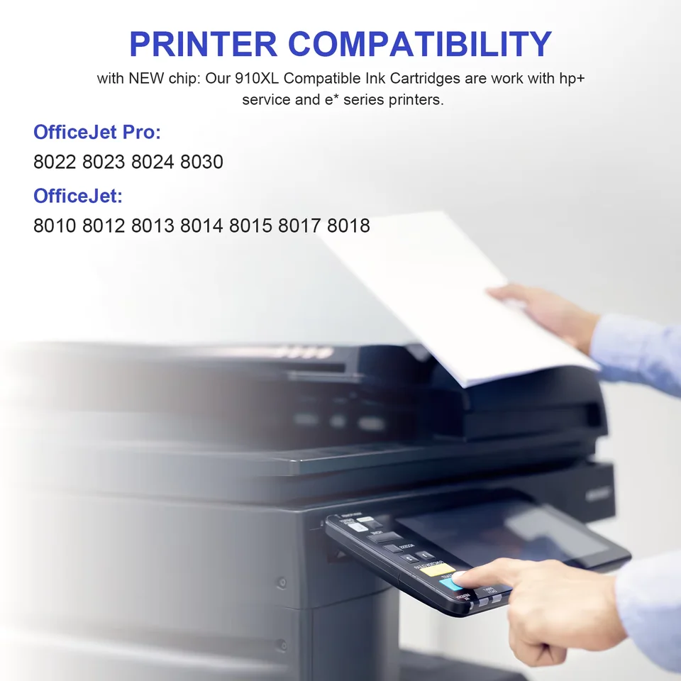 Encre d’imprimante pour HP 912 910 914 915 912XL 910XL 914XL HP – 912 – Lot de 4 cartouches d'origine – Pour ipriantes HP... Encre Haute Capacité 1500 Pages Pack De 2 Cartouches D'encre Compatibles HP 301 N9J72AE Cartouche 912 Xl 910 912 915XL Cartouches d'encre compatibles avec les imprimantes Pour HP 8012 8013 8015 8018 8020 8022Compatible avec les imprimantes-- Pour HP OfficeJet 8010 8012 8013 8014 8015 8017 8018 ;-- OfficeJet Pro 8020 8022 8023 8024 8025 8026 8028 8035., Impression-- Noir : 1 500 pages (45 ml),-- C/M/Y : 825 pages (13 ml)Cartouche d'encre de haute qualité-- L'impression est vive, l'écriture est nette et ne s'estompe pas, ce qui permet d'obtenir des textes et des images clairs pour réaliser facilement vos projets et traiter tous vos fichiers. Avant de commander, veuillez vérifier le modèle de votre cartouche d'encre d'origine et celui de votre imprimante afin de vous assurer qu'elles sont compatibles avec votre imprimante. Cartouche d'encre Hp HP 912 Pack de 4 Cartouches d'Encre Noire, Cyan... Imprimantes compatibles : 910 912 915XL cartouches d'encre compatibles avec les imprimantes pour HP OfficeJet 8010 8012 8013 8014 8015 8017 8018; OfficeJet Pro 8020 8022 8023 8024 8025 8026 8028 et 8035., Pages d'impression : noir : 1 500 pages (45 ml), cyan/magenta/jaune : 825 pages (13 ml), réduisant ainsi les remplacements fréquents. Impression nette : L'effet d'impression est vif, l'écriture est nette et ne s'estompe pas. Haute performance : L'encre 910 912 915XL est filtrée sur plusieurs couches et s'écoule uniformément, sans obstruction, sans endommager votre machine. Couleurs vives et lignes nettes, idéales pour les impressions quotidiennes à grande échelle.