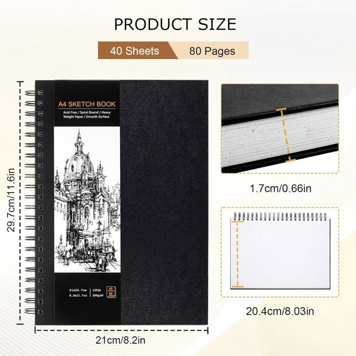 C'est également un cadeau parfait pour tous les enfants, étudiants, artistes, voisins et amis passionnés d'art 60 Pages Blanches Sans Acide Cahier De Croquis, A4 21x29CM 100 Pages (110 G-m²), Carnet De Croquis D'artiste à Reliure Feuille Détachable Dessin Graphite Aquarelle Nous ferons de notre mieux pour résoudre le problème dans les 24 heures. Les carnets de croquis A4 de Bureau Vallée sont sélectionnés pour leur qualité supérieure. Vous trouverez des marques renommées telles que Clairefontaine, Canson et bien d'autres, offrant un papier épais, blanc, crème ou texturé qui convient parfaitement aux techniques sèches et humides Facile à manipuler, forte expressivité Vous pouvez séparer les pages pour dessiner afin de maximiser l'espace pour les croquis et l'écriture Dans ce carnet de croquis à couverture rigide, tous vos dessins sont soigneusement conservés Sans acide et résistant à la lumière : papier sans acide, résistant aux moisissures et aux mites, empêche la décoloration au fil du temps, ce qui permet à votre art de rester frais et aussi lumineux et vif que possible pendant des années. MATÉRIAU DE HAUTE QUALITÉ : la couverture est faite de papier kraft jaune de haute qualité, bien fini et inoffensif. TAILLE PORTABLE : dimensions 29,7 x 21 cm, s'adapte à la plupart des types de sacs, de sorte que vous pouvez peindre n'importe où si vous en avez envie. TOKSEO Carnet Dessin A4 Carnet de Croquis, 2 pièces 160 gsm Carnet Le papier de haute qualité est solide et lisse, résistant à l'usure et pas facile à endommager, de sorte que votre carnet de croquis a une longue durée de vie Le carnet de croquis peut être essuyé plusieurs fois, mais conserve la rugosité originale du carnet de croquis et permet un toucher sec