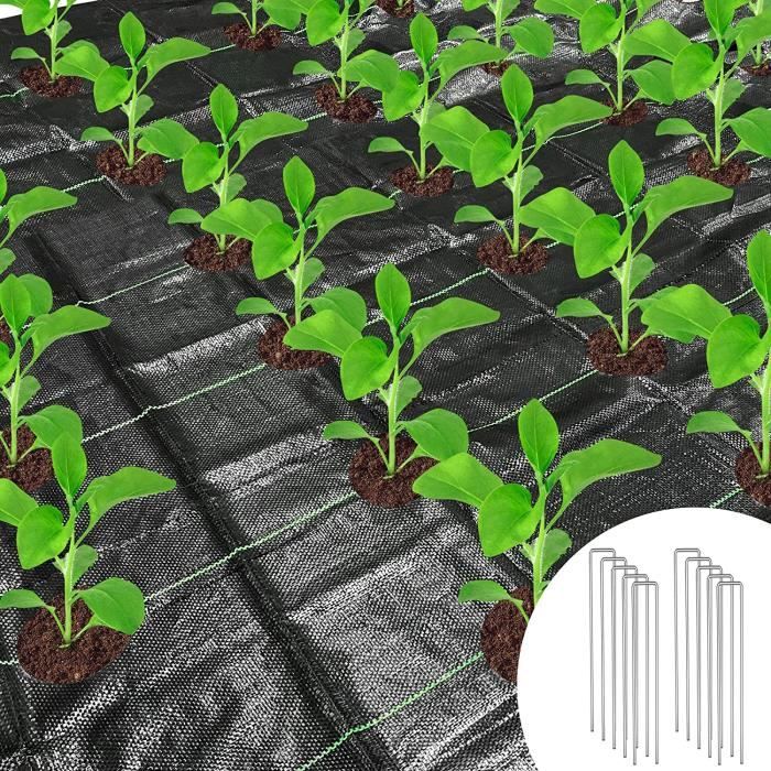Bâche Jardin Vert 60g/m² Toile De Paillage Bâche Paillage Anti-Mauvaises Herbes 2x25m Anti-UV Tissu Géotextile Perméable Anti-herbes Longueur 10m / Largeur 2,07m / Coloris Vert / 130gr/m2 / bache film Toile de paillage anti mauvaises herbes Homgoday Bâche de paillage, membrane anti-mauvaises herbes verte, 2 x 150 m, en PP, bâche de paillage, bâche de paillage pour jardin, bâche anti-mauvaises... Laissez vos plantes pousser sans mauvaises herbes avec ce tapis de contrôle des mauvaises herbes ! Il présente également une excellente perméabilité à l'air et à l'eau, ce qui aide à retenir l'humidité et les nutriments dans le sol et à garder les plantes en bonne santé. Facile à utiliser : le tissu anti-mauvaises herbes est facile à couper et à installer, et peut être ajusté librement à la taille nécessaire. Cette membrane anti-mauvaises herbes contrôlera efficacement la croissance des mauvaises herbes tout en permettant à l'eau de pénétrer dans le sol. Polyvalent: vous pouvez utiliser la membrane anti-mauvaises herbes pour le jardin ou pour le paysage, sous les parterres de fleurs surélevées, paillillage, chemins de gravier, allées, terrasses, cailloux, galets, pelouses en herbe artificielle, patios pour supprimer et contrôler la croissance des mauvaises herbes. Dimensions : 2 x 150 m (L x l). Avec bandes vertes (tous les 20 cm) , 60 g/m² , Contenu du colis : 1 TECPLAST Toile de Paillage Verte 1x15 m 50TP - Economique - Toile de...