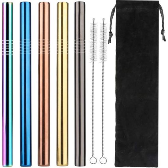 - Avec un sac de rangement en coton, compact et portable pour un transport facile, idéal pour les voyages, les fêtes, la voiture, le bureau, le barbecue, la famille, les vacances d'été, etc. Paille Reutilisable Pailles Bubble Tea Réutilisables Lot De 7 Acier Inoxydable Pailles Larges Smoothie Appréciez votre smoothie, milkshake, thé boba, jus de fruits avec une joie pure à chaque gorgée. Nous vous répondrons dans un jour ouvrable. Il peut être utilisé pour différents types de boissons chaudes ou froides. Large utilisation : Ces pailles sont aussi belles dans un thé boba que dans un smoothie, ce qui ajoute du fun à n'importe quelle fête, tendance pour les réunions de famille, les soirées entre filles, les cocktails, les pique-niques, la navigation de plaisance, etc. Découvrez les pailles réutilisables pour bubble tea de la gamme Taille 210 x 10 mm et 2 brosses de nettoyage. Spécification : Matériau du produit : acier inoxydable 18/8 (304) Longueur : 21 cm/8,3 Diamètre extérieur : 0,4'' (10 mm) Couleur : multicolore Le forfait comprend : 7 X pailles droites 2 X brosses de nettoyage 1 X sac de rangement Conseils chaleureux : 1) En raison de la différence de lumière et d'écran, la couleur de l'article peut être légèrement différente de celle des images. La durabilité de l'acier inoxydable signifie que la paille durera longtemps. La paille en métal de 21 cm de long et de 10 mm d'ouverture extra large est la taille idéale pour les smoothies glacés, les milkshakes épais, le thé boba, les bulles, les gelées, les boissons géantes et d'autres boissons épaisses faites à la maison. Facile à nettoyer : Les pailles Boba sont réutilisables avec 2 brosses de nettoyage, la brosse allongée est assez longue pour nettoyer facilement la saleté dans le tube d'aspiration, et peut être lavée au lave-vaisselle. La paille en métal de 21 cm de long et de 10 mm d'ouverture extra large est la taille idéale pour les smoothies glacés, les milkshakes épais, le thé boba, les bulles, les gelées, les boissons géantes et d'autres boissons épaisses faites à la maison VEHHE Pailles Bubble Tea Réutilisables, Lot de 6 Pailles 24c/21c... Caractéristiques : - 7 x pailles avec pointe inclinée. Les pailles larges conviennent aux perles de thé à bulles, aux perles de tapioka, aux perles de boba, au lait, aux jus, aux milkshakes, aux smoothies, etc. N'hésitez pas à nous contacter si vous avez des questions. Profitez d'une vie saine avec une paille réutilisable et saine.