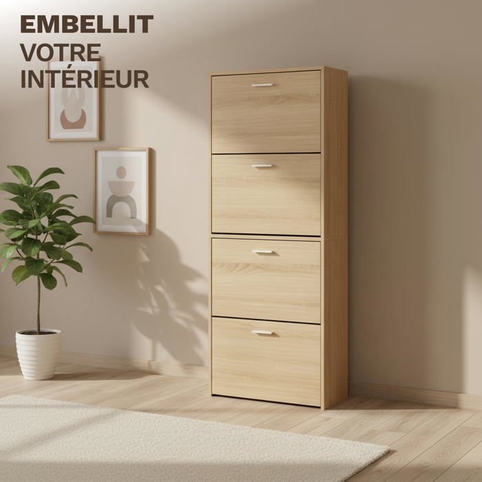 Meuble Compact 60x24x113 Cm Meuble à Chaussures 20 Paires 4 Portes Métal Noir Industriel - ESTER Armoire Chaussures 5 étagères Portes Vintage Meuble à chaussures en kit avec structure et portes couleur ciment. Équipé de 5 portes abattantes de profondeur réduite, il peut accueillir jusqu'à 12 paires de chaussures. Poignées chromées satinées. Design épuré et moderne pour des entrées fonctionnelles. Type : Meuble à chaussures 5 portes abattantes en kit. Structure et portes couleur ciment. Dimensions : 63 × 18 × 190 cm... Meuble Rangement Chaussure 15 Paires - Pour Entrée - 60x17x180 Cm Portes Noires Cadre Bois Clair Il s’intègre harmonieusement dans tous les types d’intérieurs, en particulier dans les décors modernes ou contemporains. Meuble à Chaussures 18 Paires Klark 3 Portes Blanc - Meuble à... INSTALLATION SIMPLIFIÉE AVEC MANUEL D'INSTRUCTIONS CLAIR : L'assemblage de ce meuble est facilité par un design ingénieux et un manuel détaillé inclus dans l'emballage. GRANDE CAPACITÉ DE RANGEMENT POUR TOUS LES TYPES DE CHAUSSURES : Ce meuble est équipé de compartiments rabattables pratiques qui permettent de séparer et d'organiser vos chaussures selon vos besoins. Il vous offre à la fois une solution de rangement fonctionnelle et esthétique. OPTIMISEZ VOTRE ENTRÉE AVEC ÉLÉGANCE : Ce meuble à chaussures au design moderne et épuré apporte une organisation intelligente à votre entrée ou couloir.