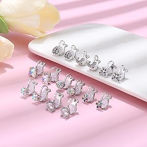 Boucles D'oreilles Filles Acier Inoxydable CASSIECA 9 Paires Boucles D'Oreilles Pour Filles Boucles D'Oreille Bijoux Enfants Cz Zirconium Boucles d'oreilles Clip pour Femme ---Vous recevrez 12 paires de boucles d'oreilles clip non perc es dans un ensemble avec diff rents styles.Boucle d'oreille clip perle, boucle d'oreille clip zircon, boucle d'oreille clip fleur, etc.Mode et simple, les boucles d'oreilles non perc es sont adapt s l'usure quotidienne et toute occasion sp ciale... CASSIECA 9 Paires Boucles d'Oreilles Créoles pour Femmes 🌟Prêt à être Offert🌟 Ces boucle d'oreille acier inoxydable sont une idée de cadeau parfaite pour les filles, les enfants de 3-18 ans pour les fêtes d'anniversaire, les soirées habillées, les accessoires de robe de princesse, les programmes scolaires, les jeux quotidiens, Noël, Halloween, Carnaval, Pâques, la remise des diplômes ou d'autres occasions ENSEMBLE DE BOUCLES D'OREILLES Collection de 20 pi ces super mignonnes de boucles d'oreilles, comprenant une boucle d'oreille en forme de serpent, une boucle d'oreille en forme de feuille, une boucle d'oreille en faux cartilage de fleurs, etc. Parfait pour votre tenue d contract e quotidienne et s'adapte toutes sortes d'occasions CASSIECA s'engage à fournir l'expérience d'achat la plus satisfaite, si vous n'êtes pas satisfait des boucles d'oreilles pour filles que vous recevez, vous pouvez nous contacter pour un remplacement ou un retour, nous répondrons dans les 24 heures 🌸Boucles d'Oreilles Dormeuses pour Filles🌸 L'épaisseur de la tige des boucles d'oreilles est de 0,8 mm, la longueur de la tige est de 6 mm, le diamètre intérieur des boucles d'oreilles est de 10 mm. Ces boucles conviennent à presque toutes les femmes et adolescentes ayant un piercing à l'oreille, elles peuvent être portées très facilement sans picotement ; la conception à vis peut être utilisée comme boucles d'oreilles dormeuses, elles sont plus confortables et plus sûres à porter Les boucles d'oreilles papillon, fleur, cœur, étoile, cheval, arc-en-ciel à la mode sont toujours préférées par les enfants et les jolies filles.