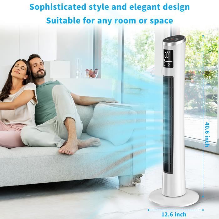 De plus, son nettoyage est d'une simplicité remarquable : un simple coup de chiffon sur sa surface lisse suffit. Contrôlez toutes les fonctions (marche/arrêt, vitesse, oscillation, minuterie) à distance et sans effort grâce à la télécommande sans fil incluse, sans avoir à vous lever. Le voyant LED s'éteint automatiquement après 5 secondes et la minuterie programmable jusqu'à 2 heures vous garantit un sommeil réparateur sans interruption. Un indispensable pour les familles. Ventilateur Colonne Silencieux 20Db Mode Veille, 7.9M/S Dc Moteur, Avec Choisissez parmi 8 modes de ventilation (Sommeil, Naturel, Normal., ., ., ) par simple pression sur un bouton. Notre ventilateur colonne révolutionnaire élimine les pales rotatives dangereuses, le rendant parfaitement sécuritaire pour les enfants en bas âge et les animaux de compagnie. Un seul bouton suffit pour contrôler notre ventilateur. Appuyez brièvement sur le bouton pour choisir entre 8 vitesses de ventilation : ventilation naturelle... 【Confort Optimal et Ventilation Constante】 : Profitez d'un flux d'air continu et agréable pour un environnement toujours frais et confortable. 【Sécurité Totale grâce au Design Sans Pales】 : Bénéficiez d'une brise rafraîchissante sans aucun risque ! 【Silencieux & Minuterie pour Nuits Paisibles】 : Dormez profondément sans être dérangé. Ventilo Climatiseur IcyAir Ventilateur Sans Pale, Ventilateur Colonne Silencieux Avec Télécoande, 8 Vitesses Ventilateur Bureau Design SHAVINGFUN Ventilateur Silencieux,38 Ventilateur Colonne Sans Pale,Ventilateur Sans Pale avec... Idéal pour une utilisation seule ou en complément de la climatisation, il assure un confort optimal pour tous, même lors des chaleurs estivales intenses.