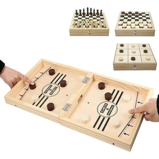 Les joueurs ne se retournent pas, ils se remplissent et tirent aussi vite que possible. Fast Sling Puck Game - Jeu De Société Rapide Slingpuck | Catapult Vous pouvez jouer avec toute la famille et ressentir la chaleur de la famille. Lego Hockey Crihovy 2en1 Jeu De Table De Portable En Bois, Jeu De Palet à Sling Rapide SlingPuck, Coffret Jeux De Société Famille, Catapult Board Game, Pour L'Interaction Parent-Enfant (35 X 22 X 2.3cm Jeu Société Sling Puck Rapide 👉 Le joueur commence la rondelle avec un élastique de la porte jusqu'à ce qu'il n'y ait plus de rondelle à côté. 👉 Variantes de jeu Punisher supplémentaires: Pour les joueurs expérimentés, Punisher est une variante intéressante du jeu. Léger et Portable]: Jeu de société léger, emportez-le et jouez-le facilement n'importe où, à l'intérieur et à l'extérieur. Emballage simple, ne prend pas de place, idéal pour les petits espaces. Le catapult board game en bois gagnant est également un... Capable de membres de la famille. sûr et non toxique, pas de mal pour le corps. Le catapult board game en bois gagnant est également un cadeau idéal pour les enfants/amis à l'occasion de leur anniversaire et de Noël. Le jeu de hockey léger en bois peut être joué partout dans la maison ou à l'extérieur [Matériel]: Le jeu de société se compose d'un cadre en bois massif de haute qualité et de pièces de jeu en bois. Chaque fois que vous lancez une balle de hockey sur glace sans passer par le but, vous devez ramasser le hockey sur glace d'un adversaire et vous écarter en récitant: J'accepte ma pénalité. [Jouets d'interaction parents-enfants]: Ball Game est un jeu simple mais amusant qui peut augmenter le plaisir de linteraction et de lémotion parent-enfant. Faites glisser les deux extrémités de la bande de caoutchouc dans les rainures latérales afin qu'elles s'enclenchent en place. [Règles Simples]: Règles simples pour 2 joueurs.