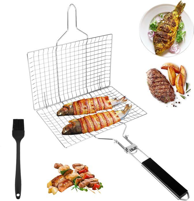 Parfait pour le camping, les garden-parties, les réunions, etc Barbecue En Brique Panier De Barbecue Portable En Acier Inoxydable Avec Poignée Amovible, Parfait Pour Griller Du Steak, Du Saumon, Des Légumes Accessoire Barbecue Camping Description du produit Panier à barbecue adapté à différents types de barbecues, y compris les barbecues à gaz, les barbecues au charbon de bois, les barbecues fumoirs, etc. Le panier à barbecue verrouillable maintient les aliments en place, il peut retourner le filet de cuisson en toute sécurité et facilement sans gaspiller de nourriture 【Un outil indispensable pour les barbecues en plein air】 Ce panier à grillades offre une surface de cuisson généreuse de 32 x 22 cm pouvant accueillir des aliments pour 2 à 3 personnes. Il peut être utilisé avec plusieurs types de barbecues : barbecue à gaz, barbecue à charbon, barbecue fumoir, barbecue en porcelaine, barbecue infrarouge, etc Panier Grille pour Barbecue, Panier de Barbecue Pliable avec Poignée, Panier de Barbecue, Panier... Lorsque vous retournez la grille, les aliments ne glissent pas et ne se dispersent pas facilement. Parfait pour le camping, les garden-parties, les réunions, etc. 【Espacement idéal entre les grilles et verrouillable】 L'espacement entre les grilles est parfaitement dimensionné pour assurer une répartition uniforme de la chaleur tout en empêchant les petits morceaux d'aliments de tomber à travers les grilles. Panier de Barbecue Portable, Panier de Barbecue en Acier Inoxydable Spécifications Nom du produit : panier pour barbecue Marque : Jidyllic Matériau : acier inoxydable Couleur : argent Dimensions de l'article L x l x H 33 x 21,5 x 2,5 cm Quantité : 1 Forme : rectangulaire 【Facile à transporter】Grâce à sa conception pliable, la poignée peut être repliée vers le haut, ce qui est pratique pour le rangement et facile à transporter.