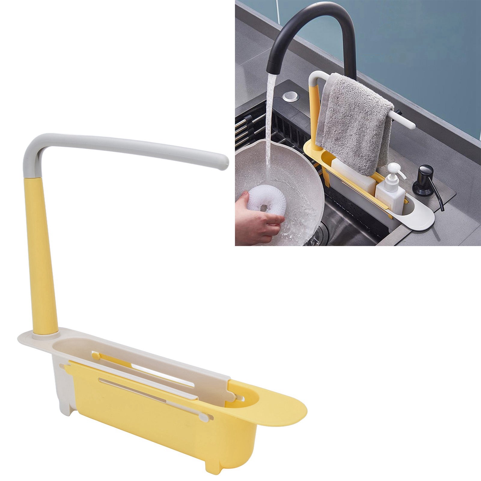 RANGEMENT D'ÉVIER TÉLESCOPIQUE : Ce support organisateur d'évier multifonctionnel peut être utilisé comme porte-éponge, étendoir, passoire, organisateur d'évier et plus encore. ETAGÈRE DE RANGEMENT Placard sous évier Extensible Organisateur Cuisine Support éponge Panier De Vidange D'évier Extensible, égouttoir Télescopique Pour évier Support Cuisine Rangement Fonctionnalité :OUTIL IDÉAL POUR LA CUISINE : Le panier de rangement suspendu de cuisine est conçu pour ranger les ustensiles de cuisine tels que les éponges, les brosses et les chiffons. Le support de panier de drainage de stockage extensible avec une conception ouverte et creuse permet à l'eau de s'écouler rapidement, les trous de drainage sont uniformément répartis pour la garder au sec. Égouttoir de Rangement Extensible pour évier télescopique avec Support... CONCEPTION EXTENSIBLE: L'étagère de rangement pour évier de cuisine s'adapte à différentes tailles d'évier, ajustant librement la longueur de 32 à 45 cm. Notre évier de cuisine à support de rangement multifonctionnel est compact mais offre un espace de rangement pour les éponges, les détergents, les brosses de nettoyage, les chiffons, etc. OUTIL IDÉAL POUR LA CUISINE : Le panier de rangement suspendu de cuisine est conçu pour ranger les ustensiles de cuisine tels que les éponges, les brosses et les chiffons. Spécification :Type d'article : Support de rangement pour évier télescopiqueMatériau : polypropylènePoids : env., 195g/6., 9ozLongueur : env., 32-45cm/12., 6-17., 7inLargeur : env., 6 cm/2,4 poucesHauteur : env., 27cm/10., 6in Liste des packages : 1 fois Support de rangement pour évier télescopique (comprend un support et une barre transversale)