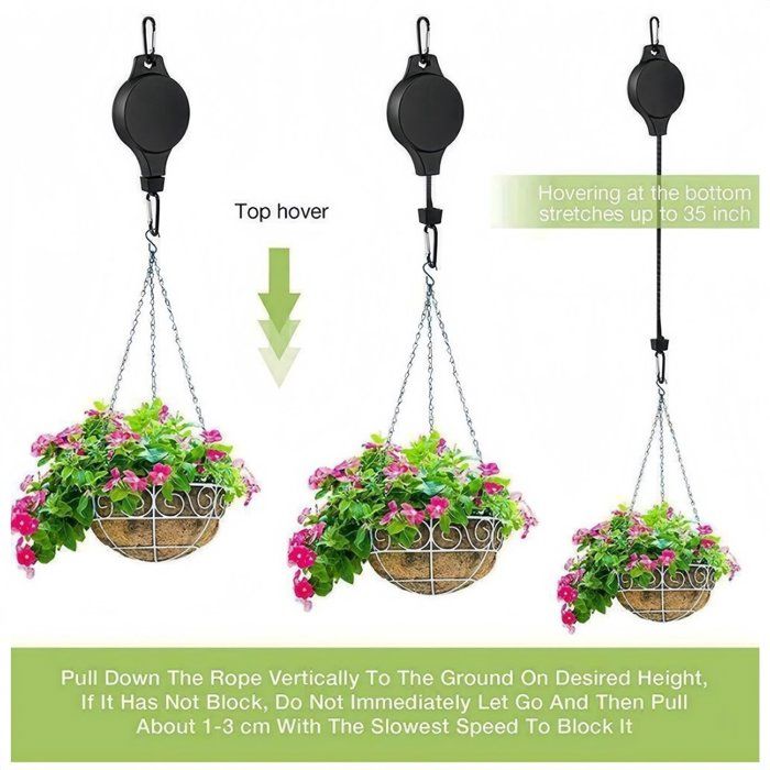 Kit 2 Poulies Rétractables Crochet Plafond Capacité 30 Kg Srup 2 Pièces Panier à Fleurs à Poulie Pour Plantes, Poulie Suspendue Pour Panier à Plantes, Cintre Rétractable Pour Poulie, Crochets Pour Panier De Fleurs Suspendu, Mangeoire Pour Oiseaux Poulie Corde Ressort 1-30kg Srup 2 Pièces Panier à Fleurs à Poulie pour Plantes, Poulie Poulie réglable pour plantes en pot Poulie Rétractable, Cintre pour... 【Crochet Télescopique】Vous pouvez rapidement soulever ou abaisser les plantes avec ce poulies de plantes, en fixant les pots dans n'importe quelle position que vous souhaitez. 【Capacité de Charge】La capacité de charge de suspension plante varie de 1 kg à 30 kg, veuillez ne pas accrocher d'objets de moins de 1 kg ou d'objets trop lourds, car pots de fleurs à suspendre est relié par un ressort interne et a une flexibilité. Tirez lentement sur la corde pour soulever la plante à la hauteur souhaitée. 【Flexible et stable】 Le dessus triangulaire en métal peut accrocher les plantes de manière stable et le matériau en acier inoxydable est imperméable et durable; le crochet ouvert en bas permet de suspendre le pot et de le retirer à tout moment. 【Facile à Utiliser et à Installer】 Panier de suspension pour plante avec un crochet, pas besoin d'acheter d'autres accessoires lors de l'installation, le crochet ouvert sur la base permet de suspendre et de démonter à tout moment. crochet de plafond pour plantes suspendues est un excellent moyen d'exposer des fleurs ou des plantes, parfait pour les balcons. panier à fleurs suspendu rend l'arrosage des plantes et l'alimentation des animaux plus faciles et plus sûrs. Fabriqué avec un câble en acier inoxydable, il s'étend jusqu'à 160 cm, garantissant fiabilité et résistance à la casse pour suspendre divers objets, des plantes aux cages à oiseaux