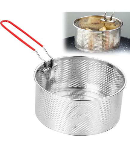 Fabriqué en fil d'acier de haute qualité, la surface des paniers à frire français est lisse et brillante, facile à nettoyer, durable et pas facile à... Paniers à frites, panier à friture pliable pour laver les fruits, panier à frites, passoire à... Panier Vapeur Panier à Friteuse Rond En Acier Inoxydable 304 Avec Poignée - Passoire De Cuisine Pour Frites, Pieds De Poulet, Rondelles D'oignons, Crevettes (M 18 Cm Petite Friteuse Panier à friture en acier inoxydable 304 en acier inoxydable
