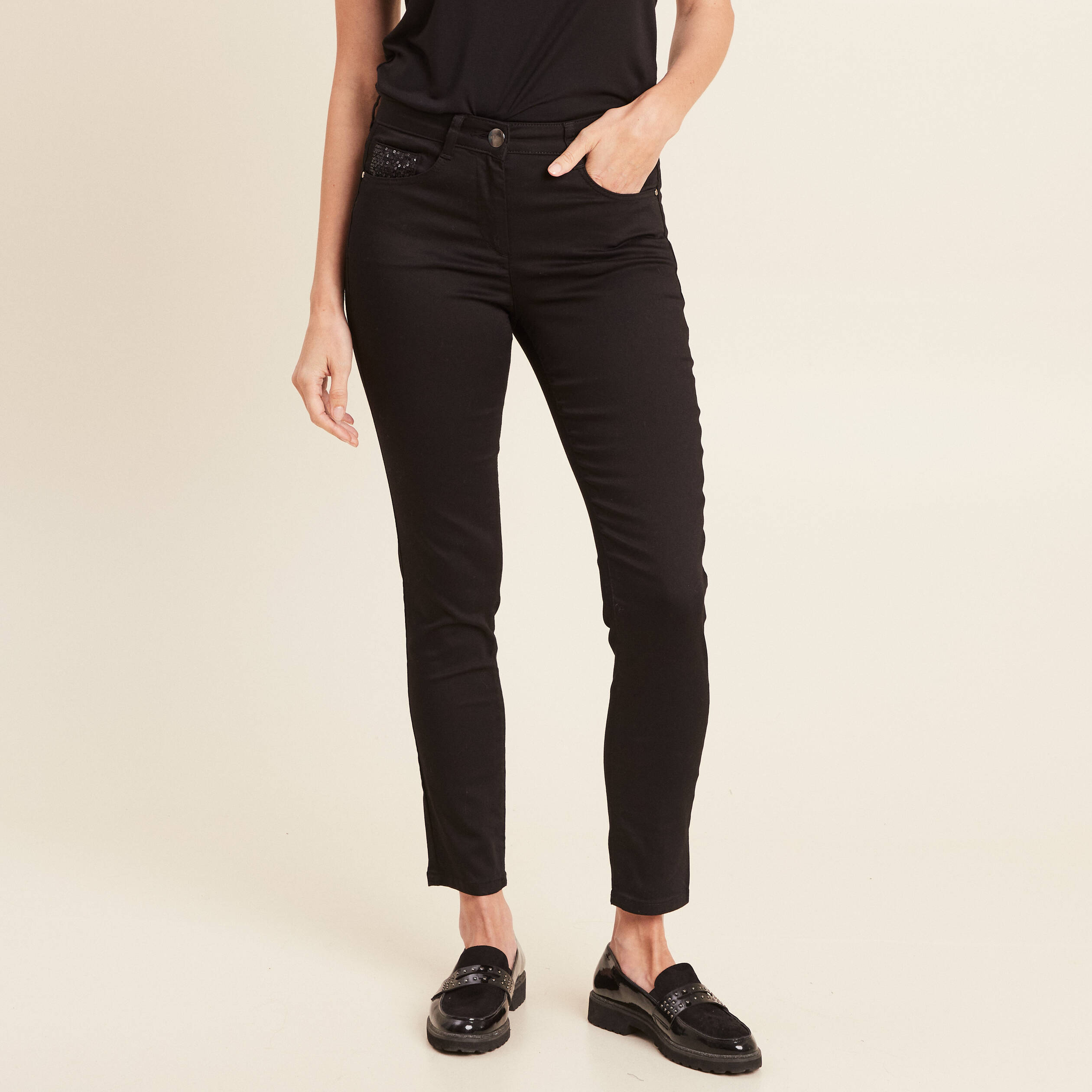 Pantalon 7 Et 8 CAROLL Femme Pas Cher – Pantalon 7 Et 8 CAROLL Pantalon Stretch Galbant Pantalon Chino Slim 7/8ème Vert Femme Pantalon Femme Achetez vos Pantalons 7 et 8 CAROLL pour femme en soldes et pas cher toute l'année. Retrouvez aussi tous nos produits Pantalons Avec sa coupe sept huitièmes et son effet galbant, le pantalon Tony B est un essentiel de votre dressing. Vêtements CAROLL pas cher - Mes Fringues - Pantalon slim à la coupe ajustée sur toute la jambe - Fermé par un bouton métallisé gravé Caroll et un zip sous patte - Ceinture montée avec 5 passants - Modèle 5 poches à rivets - Jacqueron métallisé gravé Caroll, brodé au dos - Longueur totale, 99 cm pour une taille 38, Jean slim Retrouvez-le cette saison dans de nouveaux coloris.