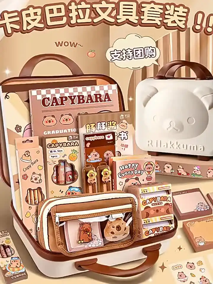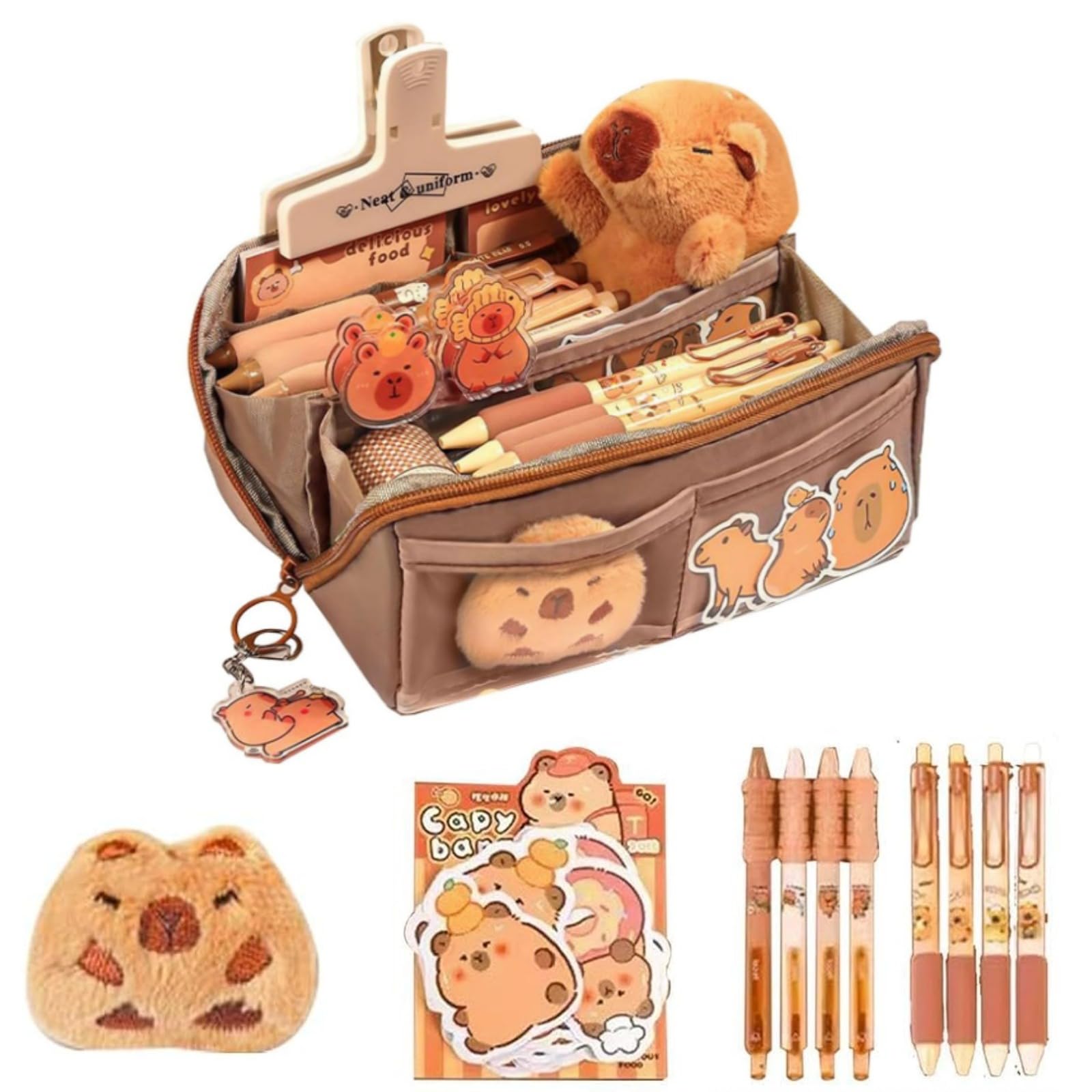 Ensemble Fournitures Créatives Mppchhn , Ensemble De Papeterie Mignon Ensemble Papeterie Capybara Set de Papeterie de Chat Mignon, 1 Sac à Stylo Télescopique en Toile Adorable ensemble de papeterie Capybara : Comprend des crayons, un taille-crayon, des autocollants, une trousse et d'autres accessoires sur le thème du capybara... Il a un fort sens de la cérémonie. Il offre une grande variété de produits pour une grande variété de besoins d'écriture et de décoration dans la vie quotidienne(Remarque : clip aléatoire x 1, porte-clés aléatoire x 1) Conception Multicouche - L'ensemble de papeterie capybara dispose d'un système de stockage multicouche qui comprend des sacs de rangement soigneusement placés pour garder vos articles en ordre. Descriptions des produits : 1., Stockage de grande capacité : conception de cloison à 12 couches, ouverture à 90 degrés, peut être utilisée comme étagère une fois dépliée, peut facilement accueillir 100 stylos et peut également contenir une règle de 20 cm de long, pour un stockage et une organisation classés., 2., Thème Capybara : la papeterie et la trousse à crayons sont toutes conçues dans le style capybara, mignonnes et accrocheuses, et sont livrées avec des autocollants capybara pour pimenter votre trousse à crayons DIY et ajouter plus de plaisir., 3., Utilisation polyvalente : peut être utilisé comme cadeau pour les fêtes, les études, les anniversaires et les cours. Grâce à sa flexibilité, vous pouvez classer vos articles en fonction de vos besoins spécifiques Conception de Dessin Animé Mignon - La trousse à crayons Capybara présente des motifs de capybara exquis et mignons, qui sont très populaires auprès des enfants. Parfait pour les cadeaux de festival et d'anniversaire Kit De Papeterie Mignon Dessin Animé Trousse À Crayons De Crayon...