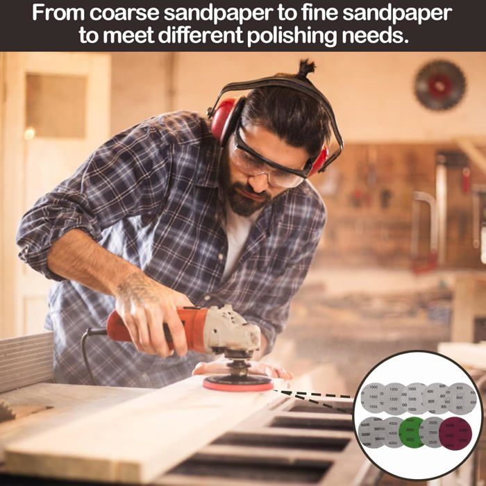 Disques Ponçage Carrosserie Papier Abrasif Polyvalent Disques Ponçage 75mm - Lot 50 Pièces Grains 600 à 5000 Pour Métal Bois Carrosserie Ponçage Phare Voiture Papier A Poncer Carrosserie Papier à poncer carrosserie au meilleur prix | Leroy Merlin Disque De Poncage 75mm]Papier poncer 75mm fabriqué en papier de carbure de noir, papier latex et carbure, plus résistant à l'usure, antistatique, moins de poussière, pas facile à obstruer, haute flexibilité, pas facile à casser lors du polissage Cela économise efficacement votre temps de travail. Papier Poncer 75mm - Ces papier a poncer carrosserie sont compatibles avec un support de 75 mm, mais ne conviennent pas aux supports de ponçage adhésifs. Veuillez nettoyer la poussière et remplacer l'ancien tampon avant de les utiliser. Parfait pour l'industrie automobile, le travail du bois et les usages domestiques. Disque Ponçage 75mm - Le papier poncer diametre 75mm convient à la plupart des outils rotatifs, tels que les meuleuses, les meuleuses pneumatiques, les perceuses électriques, etc. Disque de Poncage 75mm - Le papier poncage est composé de papier de carbure de silicium noir et de papier latex, avec 30 % de carbure de silicium ajouté pour améliorer la résistance à l'usure. Papier à Poncer - Papier poncage carrosserie voiture 75mm contenir 10 tailles de particules différentes: 600 800 1000 1200 1500/2000 2500 3000 4000 5000., Il existe également papier à poncer à l'eau pour répondre à vos différents besoins. 100Pcs Disque Poncage 125Mm, Grain P180 Disque A Poncer, Disques...