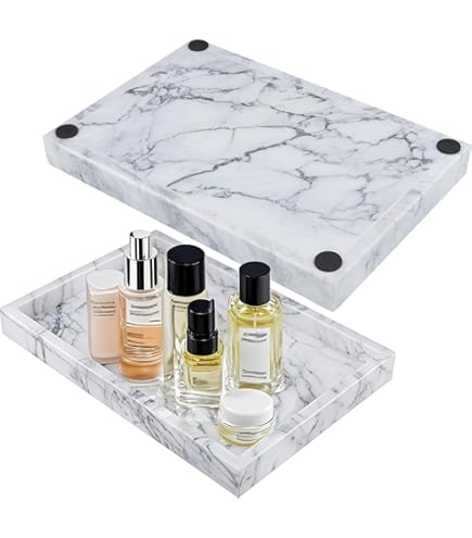 Plateau salle de bain effet marbre - Home | MANGO France métropolitaine Optez pour une salle de bain zen, tout en bois clair et pierre sombre, ou pour un décor contemporain avec un plan gris effet béton. Vous pouvez aussi jouer sur les contrastes en choisissant des meubles foncés et un plan clair, ou au contraire tout assortir Plateau Rectangulaire 30x20 Cm Papier Adhésif Cdiscount Papier Adhésif Marbre FunStick 40cm X 6m - Autocollant Meuble Amovible Pour Cuisine, Salle De Bain - Gris Papier Collant Pour Meuble Plan De Travail Salle De Bains Utilisez le plateau en marbre pour organiser vos ustensiles de salle de bain, ranger des cosmétiques, présenter des bougies ou servir de pièce centrale sur votre table à manger. Design élégant en marbre : ce plateau de salle de bain dispose d'un motif marbré classique blanc et gris qui ajoute une touche de sophistication à votre salle de bain, cuisine ou plan de travail. Panneau mural pour salle de bain - Rose Gris Géométrie dorée II 100 x... Le fond de protection antidérapant assure la stabilité et protège votre Surfaces contre les rayures. Excellente solution de rangement : le plateau en marbre est idéal pour organiser les accessoires de salle de bain, les articles de toilette, le maquillage ou comme plateau décoratif pour les vases dans le salon. Base antidérapante : 4 tampons en mousse sur la partie inférieure pour éviter les rayures sur les surfaces et assurer la stabilité lors de l'utilisation. Multifonction : parfait comme plateau de lavabo, porte-bijoux, porte-bougie ou élément décoratif pour n'importe quelle pièce de votre maison.