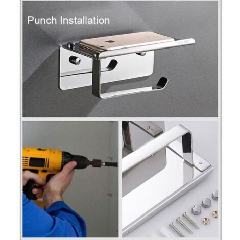 Doryum Porte-rouleau de papier toilette autocollant en acier Support Mural Anti-chute Dépoli Porte Papier Toilette Mural, 304 Acier Inox Boîte À Mouchoirs Rangement Salle De Bain Design Moderne PORTE-PAPIER HYGIÉNIQUE SANS PERÇAGE - Avec un adhésif ultra-fort, aucun perçage nécessaire, ne laisse pas de dommage sur le mur, supporte jusqu’à 10 KG PORTE-PAPIER HYGIÉNIQUE SANS PERÇAGE - Avec un adhésif ultra-fort, aucun perçage nécessaire, ne laisse pas de dommage sur le mur, supporte jusqu’à 10 KG Haute qualité et durabilité]: Support papier toilette, utilisez un matériau en acier inoxydable 304, imperméable, antirouille et anticorrosion, polissage multicouche, production fine, luminosité durable [Élégant et exquis]: Support papier wc en plus de suspendre le papier toilette sur le porte-papier hygiénique, vous pouvez également placer votre téléphone portable, vos... DEUX MÉTHODES D'INSTALLATION - Installation avec perçage (vis incluses), installation adhésive (adhésif inclus), répond à vos besoins de décoration (remarque : avant l'installation, nettoyez le mur, le maintenir lisse et sec) FABRIQUÉ EN ACIER INOXYDABLE 304 DE HAUTE QUALITÉ - Résistant à la rouille, aux rayures, durable