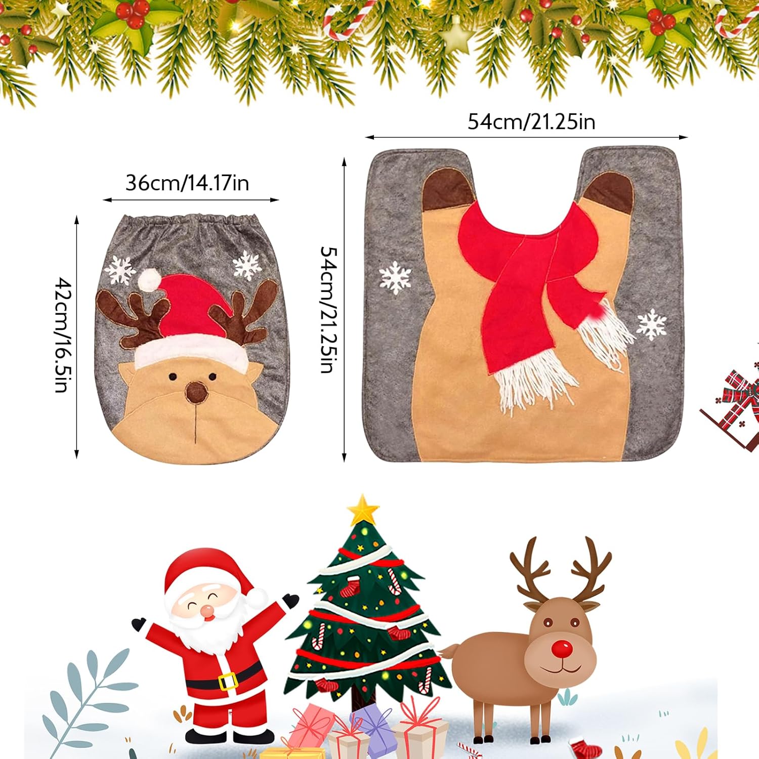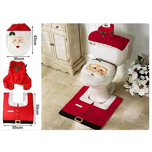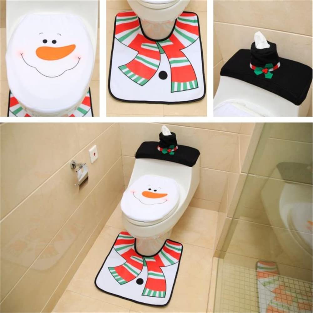 Housse de Chaise Père Noël - Lot de 4 - Bonnet de Noël - 46 x 40 cm - Décoration Festive Housse de siège de toilette de Noël - Décoration de Noël - Motif Père Noël, bonhomme de neige, élan Accessoire Deco Festif Pour Wc Papier Toilettes Déco Toilette Noël 3 Pièces - Père Noël/bonhomme De Neige Decoration Toilette Accessoire Déco Salle De Bain Noël Cadeau pour Noël : design mignon pour décorer les toilettes pour Noël et les vacances, transformant des toilettes ennuyeuses en un joyeux pays des merveilles de Noël 3 PCS Décoration Noël Toilette en Motif Père Noël avec Housse de Toilette/Tapis pour Noël pour...