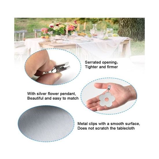 Nappe ronde blanche 100 % polyester pour réception de mariage, restaurant, banquet, fête, nappe pour mariage, diamètre du cercle : 260 cm Clips de nappe cœur avec pinces coordonnantes - Test et Avis Poids De Nappe En Pierre Pinces Nappe De Table Exterieur Lot De 4 Poids De Nappe Magnétiques Papillon - 53 G Chacun - Acier Inoxydable - Pour Extérieur, Jardin, Fêtes Poids Nappe Magnétique Extérieur Stabilisateur Nappe Extérieur Résistant au vent et stable : nos poids de nappe en pierre naturelle lourde et clips métalliques robustes maintiennent votre nappe en place même en cas de vent fort - Idéal pour les pique-niques, les fêtes de jardin ou le camping Design élégant : le poids de nappe est disponible en gris élégant ou blanc brillant et met l'accent sur l'élégance sobre. Le lot de 6 pinces en marbre et métal empêche ta nappe de s'envoler au moindre coup de vent. Chaque pince fait environ 3,5x8,5cm avec une boule de marbre d... Parfait pour toute aventure en plein air pour maintenir votre nappe en place Utilisation polyvalente : avec des pinces réglables, les poids de nappe s'adaptent à toutes les tailles de table. Idéal pour un cadeau pratique pour toutes les occasions Pratique et élégant : disponible en deux couleurs - gris et blanc - le lot contient 6 poids de nappe qui allient fonctionnalité et esthétique.
