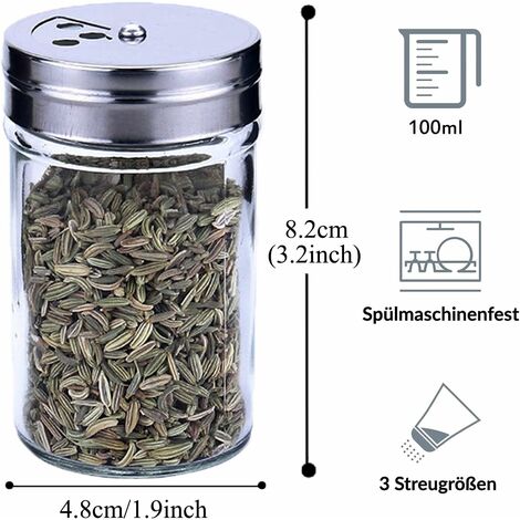Le couvercle est fabriqué en acier inoxydable et en matériau ABS, ce qui lui confère non seulement une bonne étanchéité et durabilité, mais est également résistant à l'eau et à l'humidité et garde les pots à épices propres et hygiéniques., Flacon transparent. 4 Pièces Pot À Épices Récipients À Épices Bac À Sel Ustensiles De Cuisine Bouteilles De Design transparent : la bouteille de sel et de poivrière a une texture cristalline et pure, avec une transmission lumineuse élevée, et à l'aide de la ligne graduée, il peut clairement montrer la quantité restante du contenu et éviter de prendre les mauvaises épices Lot De 4 Pots épices Paquet De 12 Pots à épices Avec Couvercle Carré En Bois, Lot De Pots à épices De 150 Pot Epice Les pots à épices sont fabriqués en verre à haute teneur en borosilicate, qui a une excellente résistance à la chaleur et résiste à des températures élevées sans se casser ou se déformer. Le verre à haute teneur en borosilicate a une transparence extrêmement élevée, ce qui rend les épices clairement visibles dans la salière. Relaxdays Salière et poivrière, couvercle, lot de 14, 150 ml chacun... Les pots à épices scellés peuvent toujours conserver le goût original des épices et leur qualité Contenu de la livraison : 4 pots à épices Salière et poivrière | Boîte à épice Quantité : 4 Dimensions : 6 x 6 x 20,5 cm., Capacité : 500 ml. Il est non seulement pratique de connaître la quantité d'épices restantes à tout moment, mais fait également de la salière un bel aspect dans la cuisine et améliore l'esthétique générale Conservez le goût d'origine. Trois types de trous d'épices : notre couvercle de salière dispose de trois tailles différentes d'ouvertures de sortie qui peuvent être tournées et commutées selon vos besoins d'utilisation pour répondre à différents scénarios d'application Lot de 4 pots à épices avec couvercle rotatif, salière et poivrière de 500 ml, pots à épices avec trous pour épices, en verre borosilicate Matériaux de qualité supérieure. Il est très facile de le rincer à l'eau ou de le mettre au lave-vaisselle pour restaurer facilement la propreté