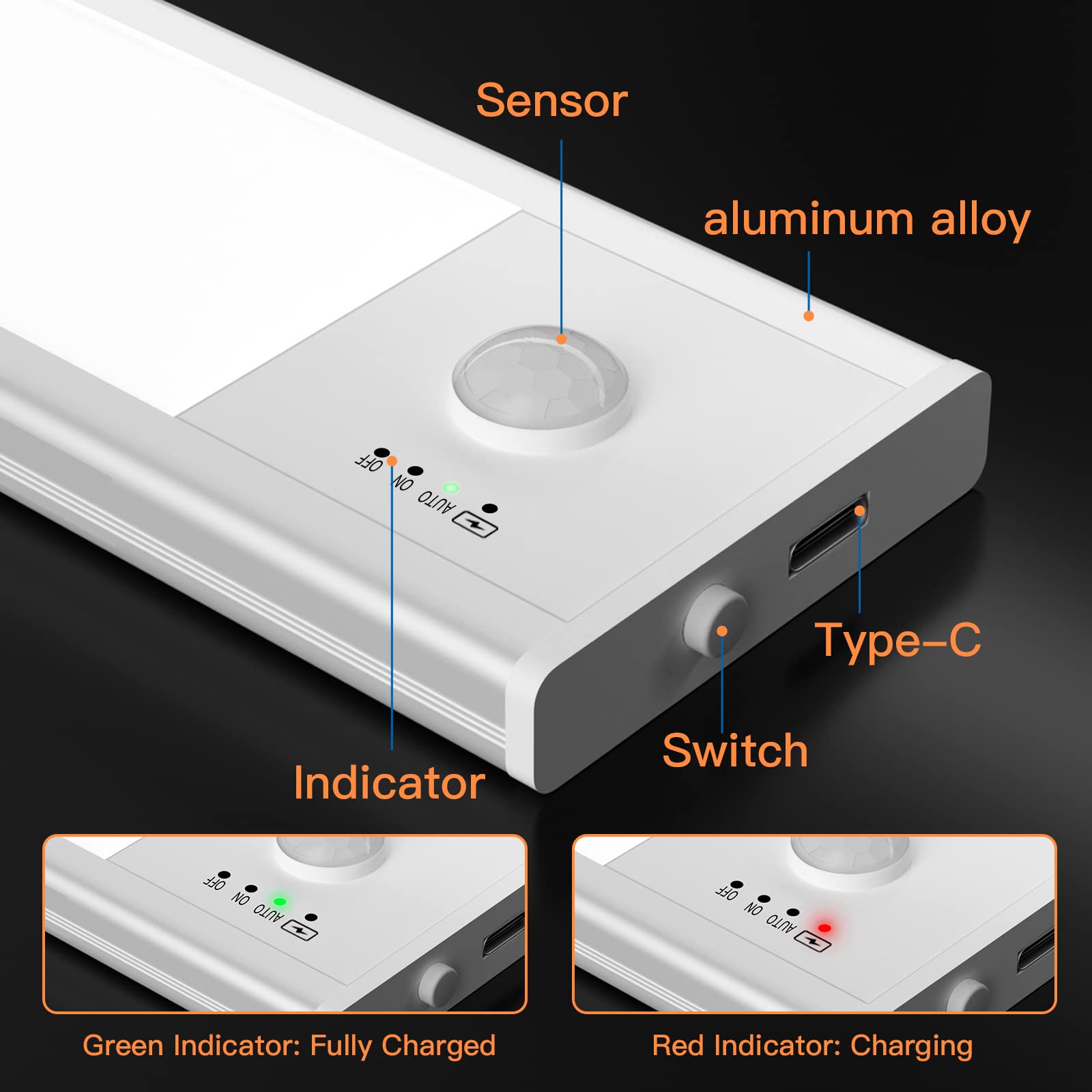 30 cm : environ 30 x 4 x 1 cm. Contenu : 1 lot de lampes de placard avec détecteur de mouvement. Éclairage nocturne sensible au mouvement : la conception avancée basée sur le capteur élimine le fonctionnement manuel, offrant des solutions d'éclairage automatique à faible luminosité qui s'activent instantanément avec le mouvement humain, assurant une sécurité nocturne optimale Taille du produit : 20 cm : environ 20 x 4 x 1 cm. Luminaire Cuisine Lampe De Nuit Sans Fil à Détecteur De Mouvement Led Pour Armoire Cuisine Chambre Coucher P 884142 Caractéristiques du produit : induction intelligente, éclairage automatique, design magnétique, bâton et utilisation Scénarios applicables : éclairage intérieur de garde-robe, fond de lit et armoire de rangement, établi de cuisine., Éclairage : trois couleurs. Caractéristiques : Nom du produit : éclairage sous armoire Matériau du produit : aluminium + PVC. Lumière LED sans fil avec détecteur de mouvement, veilleuse... Lumière durable et fiable : équipée d'une puce à faible consommation d'énergie, les lumières sous armoire offrent des mois d'utilisation continue tout en émettant un éclairage doux et uniforme, réduisant les tracas d'entretien grâce au support de batterie rechargeable Ces luminaires éliminent le besoin de percer tout en offrant une solution de veilleuse fiable pour les cuisines, chambres, armoires, escaliers, bars et autres espaces. Remarque : En raison des différents paramètres d'éclairage et d'écran, la couleur de l'article peut être légèrement différente de celle de la photo. éclairage Intérieur Intelligent Lampe De Nuit LED Sans Fil Alimentée Par Batterie, Mini Capteur De Mouvement, Appliques Murales Pour Escaliers, Toilettes, Chambre à Coucher, éclairage D'armoire Détecteur De Lumière Intérieur Tekstap Lape de placard LED rechargeable 40 LED avec détecteur de... Design fin : une structure visuellement légère combine une précision standard millimétrique et un alignement des surfaces sans couture, parfait pour les zones confinées tandis que les bords arrondis lisses ajoutent une touche raffinée