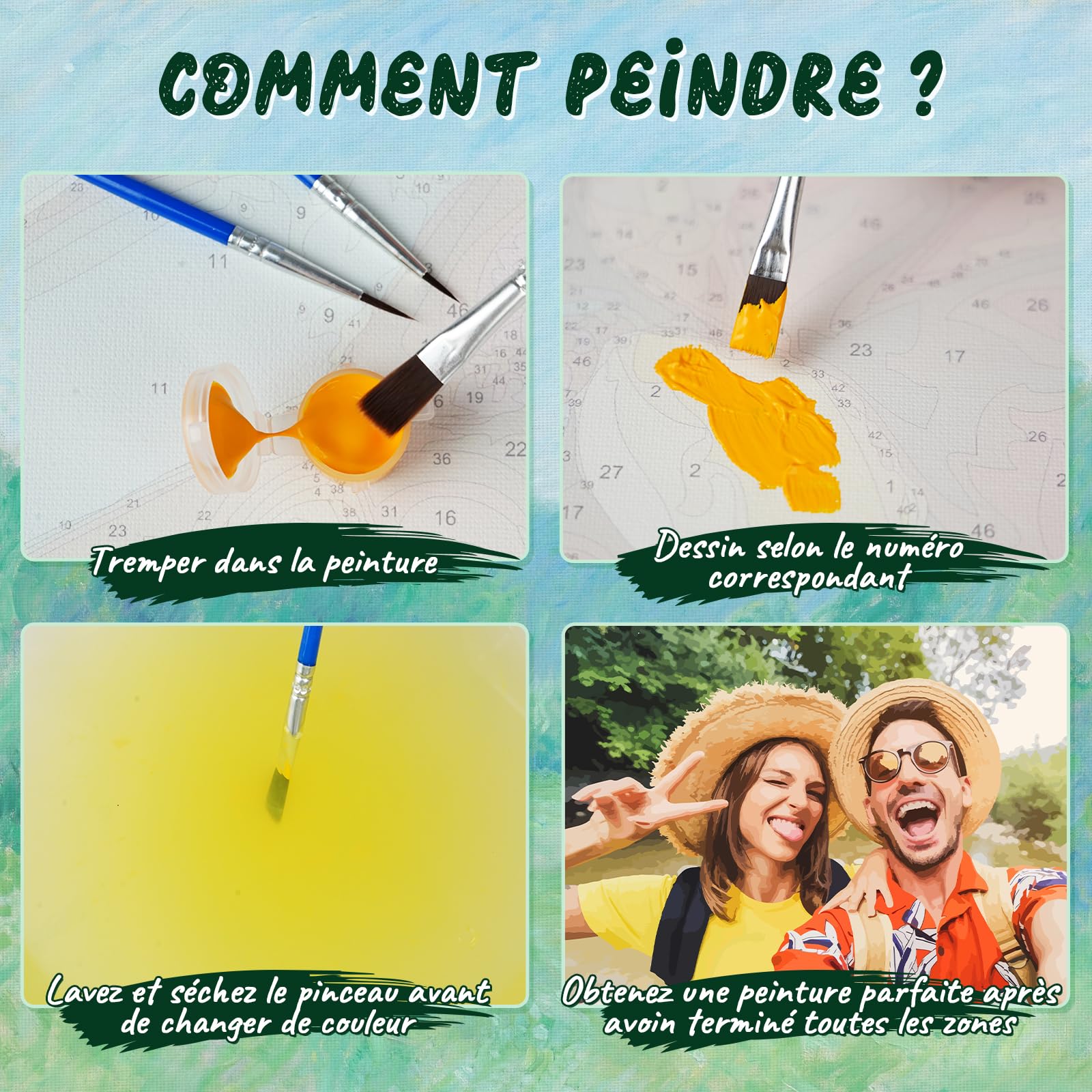 Pour toute question ou demande, contactez-nous sans hésiter — nous vous répondrons au plus vite ! Peinture Adulte DIY Tableau Cadeau Personnalisé Peinture Par Numéro Adulte - Personnalisée Peinture Personnalisé Photo Qu'il s'agisse d'un moment en famille, d'un souvenir de mariage ou d'un portrait d'animal, nous le convertissons en une peinture par numéro unique. Peinture par numéro adulte schipper – Resine de protection pour peinture 🎨 【Facile à Réaliser】 – Que vous soyez un débutant ou un peintre expérimenté, ce projet de bricolage est pour tout le monde. Notre kit peinture numéro adulte permet à tout le monde de devenir un artiste. U UPALL Personnalisée Peinture par Nuéro Adulte, Kit Peinture Nuéro... Une fois terminé, votre chef-d'œuvre artisanal deviendra un souvenir précieux à chérir pendant des années. 🖌️【Matériaux de Qualité Premium】 – Peinture acrylique haut de gamme à fort pouvoir couvrant, masquant facilement lignes et chiffres. Une œuvre d'art unique, créée à partir de souvenirs, bien plus significative qu'un cadeau ordinaire. Figured'Art Peinture par Numéro Adulte avec Cadre Cabanes à oiseaux La toile résistante et imperméable garantit une longévité optimale, tandis que les numéros bien visibles facilitent l'identification des zones — pour une expérience de peinture fluide. ✨【Service de Qualité】 – Du découpage des photos à la conception, en passant par le mélange des couleurs et enfin la production, nous avons travaillé sur chaque aspect du processus.