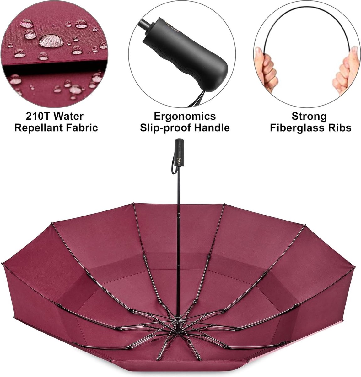 Parapluie résistant aux tempêtes jusqu'à 140 km/h, parapluie Parapluie de poche manuel moyen A.050 - Compact, résistant aux tempêtes... Parapluie Résistant Tempête Parapluie Inversé Compact- Résistant Aux Intempéries, Parapluie Pliant Automatique Coupe-Vent, Parapluie Homme Matériau Imperméable Portée 105 Cm Parapluie 2 Personnes Automatique L'ouverture et la fermeture du parapluie de poche se font automatiquement par simple pression d'un bouton. Construction coupe-vent avec des matériaux robustes qui résistent aux fortes rafales et à la pluie. Parapluie de Poche a Ouverture Automatique - Résistant au Vent... Utilisation rapide et pratique d'une seule main, idéal pour les trajets en plein air, la pluie ou lorsque vous portez des sacs ou des bagages. Ne se plie pas en cas de vent latéral ou de tempête. Design élégant et fonctionnel, parfait comme cadeau ou pour un usage personnel, adapté aux femmes et aux hommes, avec une garantie de 2 ans et un service client pour tous les besoins. Comprend un étui de voyage pratique avec fermeture éclair pour un rangement propre et bien rangé, protège le sac de l'humidité, parfait pour le bureau, le train, la voiture, les voyages ou les randonnées.