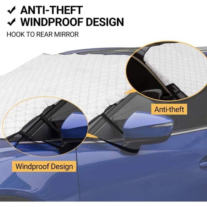【Taille universelle】La protège pare brise taille de 145*108CM s'adapte à presque tous les véhicules tels que GM, voitures, SUV, camionnettes, Jeeps, etc. Accessoire Voiture Universel 145x108cm Sollbry Couverture Pare-Brise Voiture,Protege Pare Brise Givre Pare Brise Hivercouverture Pare Brise Voiturepare Soleil Anti Givre Neige Anti Glace Uv Soleil Protection Repliable Universe 85445650 Couverture Pare Brise Voiture Hiver Vous êtes-vous senti irritable face à des tas de neige sur votre voiture avant de conduire? Essayer notre protege pare brise givre, exactement conçue pour votre matinée d'hiver relaxante ! Veuillez mesurer la taille du pare-brise de votre voiture avant d'acheter. 【Économie de temps et d'énergie】Rien n'est pire que de devoir se lever tôt un jour de neige pour déneiger votre voiture. 【Protection quatre saisons】En hiver, elle peut être utilisée comme protege pare brise givre afin d'empêcher le givre et la glace de se former sur la vitre. Conçue pour durer, notre protection hivernale associe aluminium PEVA, ouate et tissu pour une isolation et une résistance optimales. Souple yet ultra-résistante... En raison de la différence de réglage de la lumière et de l'écran,la couleur de l'élément peut être légèrement différente de celle des images. vous aide à enlever la neige accumulée sur le pare-brise en quelques secondes Description : -Les quatre couches de matériaux aux fonctions différentes peuvent résister à la plupart des aspects de la menace dans différentes conditions météorologiques et apporter une protection intime au pare-brise -5puissants aimants cousus à l'intérieur garantissent que la housse reste parfaitement en place. En été, elle sert de pare soleil voiture pour le pare-brise de la voiture, empêchant les rayons UV et la chaleur de pénétrer dans l'habitacle. Facile à nettoyer et à plier, et vous pouvez le ranger dans votre voiture lorsque vous n'en avez pas besoin. Remarque: Veuillez permettre une légère différence de dimensions en raison de différentes mesures manuelles. 【Triple fixation - coupe-vent】Notre anti givre pare brise est doté de 5 aimants puissants qui assurent la stabilité.