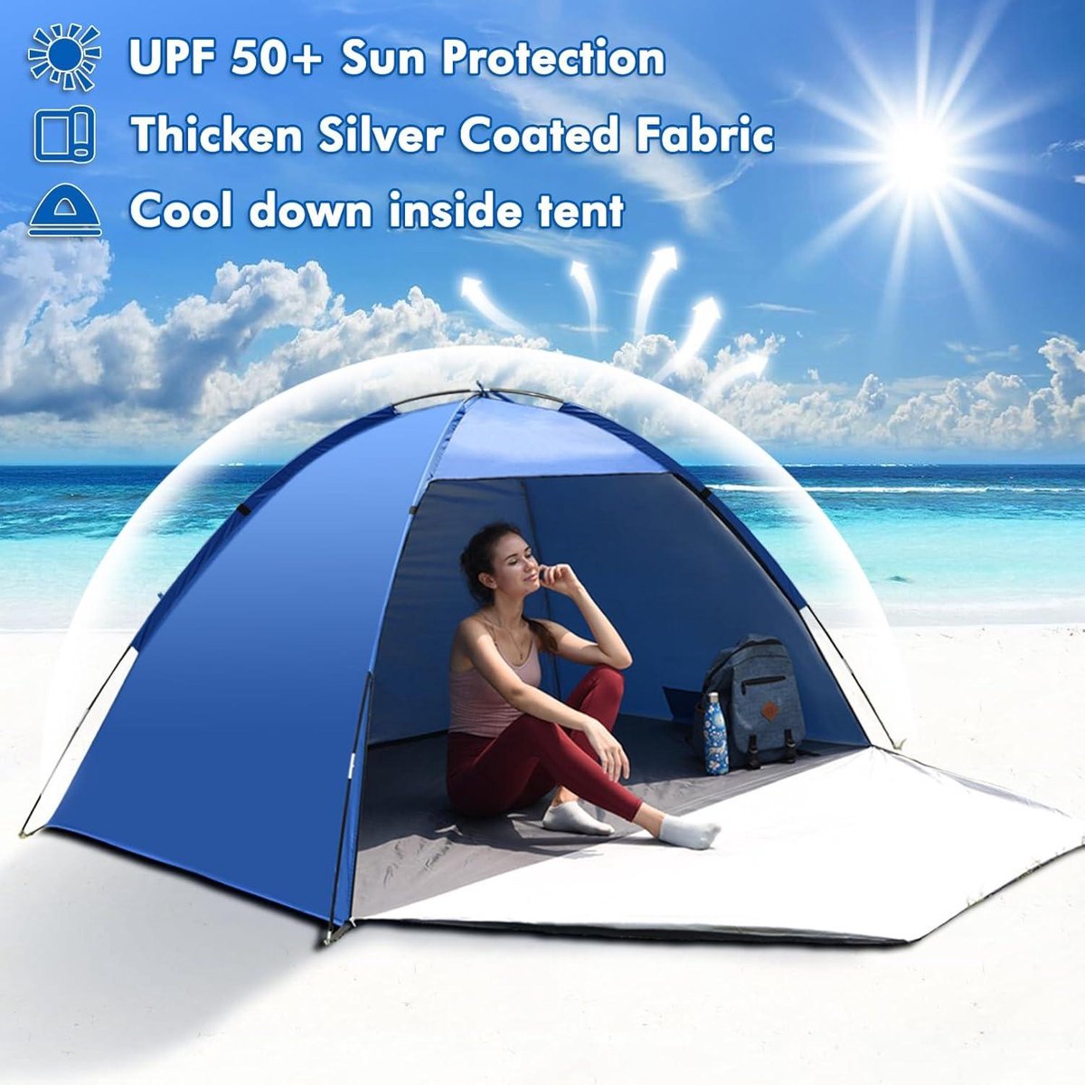 Spécifications: * Nom du produit : tente solaire et chauffante. La protection UV 50 du tissu polyester argenté protège efficacement toute la famille des rayons du soleil, même aux heures les plus chaudes. La maille haute... Facile à plier grâce à un simple mouvement de rotation en fait le compagnon idéal pour les excursions spontanées à la plage ou les visites au parc avec votre ami à fourrure. *Protection UV et résistance aux intempéries : fabriquée à partir de matériaux de haute qualité résistants aux UV, cette tente bloque efficacement la lumière du soleil nocive et vous protège, vous et vos animaux de compagnie, des rayons UV. Tente Montage Rapide Pare-Soleil De Tente De Plage De 12 X 12 Pieds Avec Protection UV UPF 50+, Conception De Ventilation Sur 6 Côtés, Abri Solaire De Tente De Plage Avec Sacs De Sable Protection UV Plage Parc [Design POPUP AUTOMATIQUE] : profitez de la commodité de ce pare-soleil pour animaux de compagnie avec une installation automatique en 2 secondes sans montage. Caracteristiqu *Format mini pratique : cette tente de plage pop-up est compacte et facile à transporter. * Couleur : bleu saphir, rouge carmin, pastèque, vinyle, orange avec jaune, rouge carmin avec bleu, double bleu Contenu de l'emballage : 1 tente pour appuie-tête, 1 sac de rangement. [Retrait sécurisé] : offre un espace confortable et protégé pour les chats, les chiens et autres animaux domestiques. Votre animal peut observer son environnement sans être dérangé, particulièrement précieux dans des environnements peu familiers où les animaux domestiques recherchent souvent la sécurité. * Installation rapide et facile : ce pare-soleil automatique s'installe en seulement 2 secondes sans assemblage, et le pliage est également facile avec un simple mouvement de rotation. Caractéristiques de conception pratiques : la tente dispose d'une poche zippée sur le dessus pour un accès facile à votre smartphone à écran tactile et de poches latérales en filet pour ranger de petits objets, pratique pour vos activités de plein air. Une tente de plage offre une excellente protection contre les rayons UV, permettant de se relaxer à l’ombre sans s’inquiéter des coups de soleil. Elle nous permet également de rester au frais lors des journées chaudes, créant un espace agréable pour toute la famille * Un refuge sûr pour les animaux de compagnie : la mini tente offre aux chats, chiens et autres animaux de compagnie un refuge sûr et confortable afin qu'ils puissent se sentir à l'aise dans un environnement inhabituel et observer leur environnement sans être dérangé. Disponible en différentes couleurs attrayantes telles que le bleu saphir, le rouge carmin, le vert pastèque, le vinyle, le jaune orange et plus encore pour un look élégant sur la plage. TENTE DE PLAGE pop-up Abri solaire anti-uv Tente protection soleil