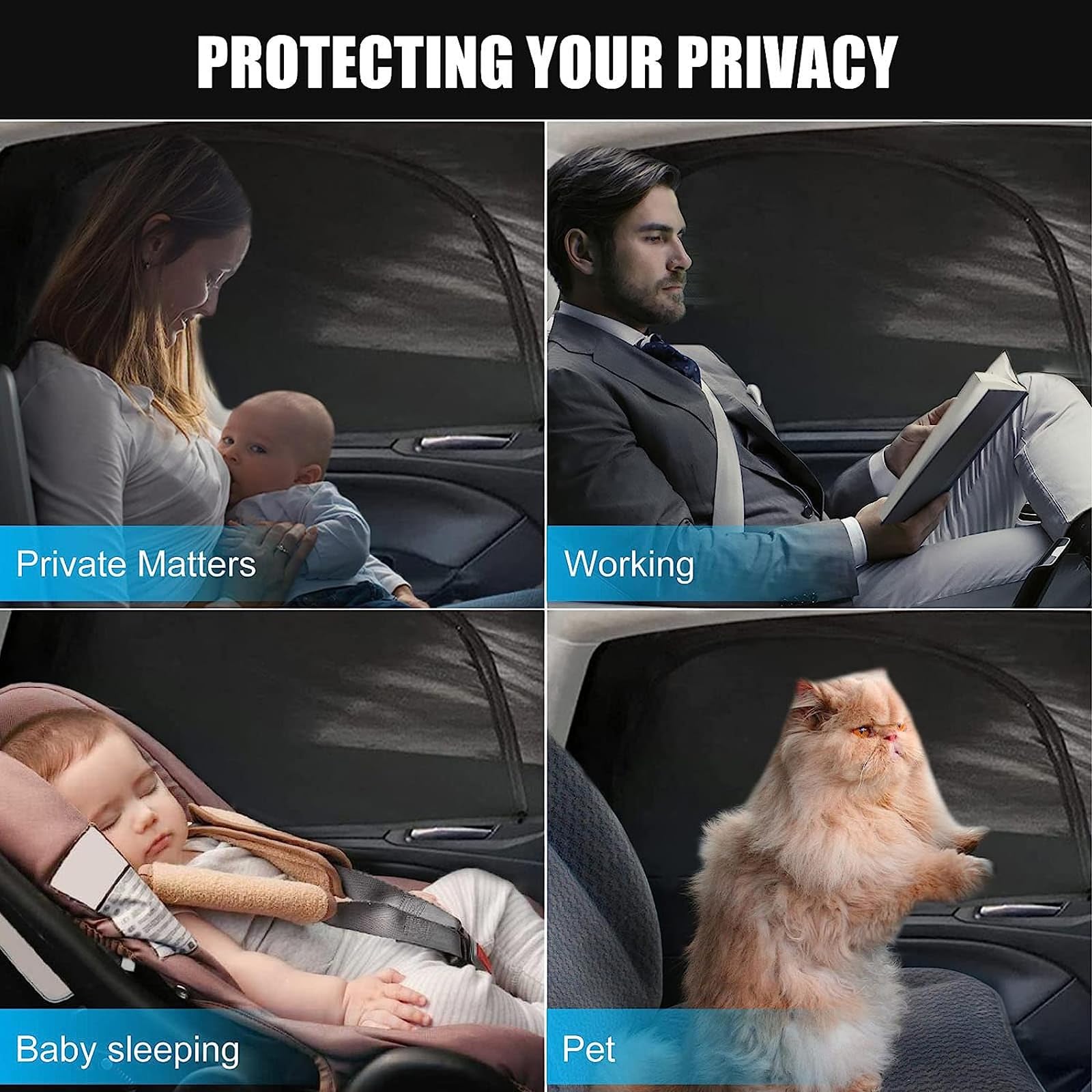 Grâce à leur flexibilité unique, ils couvrent entièrement la vitre de la voiture et s'ajustent à sa taille. Pare Soleil Filet Nylon Noir ,Pare Soleil Voiture Arriere,Protege Soleil Voiture Bebe,Cache Soleil Pare Soleil Voiture Bébé Description du produit : Matériau : Filet en nylon Couleur : Noir Contenu : 1 paire de pare-soleil en filet pour voiture [Mode d'emploi] Insérez la vitre avant dans le rétroviseur jusqu'au bord du cadre de la portière, puis tirez le bord supérieur vers le haut. Pare soleil bebe voiture - Mon Premier Nid Son effet de protection solaire est compatible avec la plupart des vitres. 【Protege Soleil Voiture bebe】Ce pare-soleil en maille offre une bonne perméabilité à l'air et se place à l'extérieur du cadre de porte. Cache Soleil pour Fenêtre Voiture, Pare Soleil Voiture pour BéBé avec Protection UV, Protection... 【Pare Soleil Pare Brise Avant】Ce pare-soleil est compatible avec la plupart des modèles de voitures et utilise un matériau super élastique de nouvelle génération. [Avantages du produit] Protection de l'intimité : Le pare-soleil couvre entièrement la vitre de la voiture, empêchant ainsi les personnes extérieures de voir clairement l'intérieur de la voiture. Vous pouvez lever et baisser la vitre librement et profiter de l'air frais et du magnifique paysage extérieur tout en vous protégeant du soleil. Pare-soleil voiture bébé protection uvchaleur 2pcs taille 44x36 cm Ainsi, vous créez un espace privé et indépendant, vous permettant par exemple de manger, de consulter des informations confidentielles, etc. 【Pare Soleil Voiture Bébé】Sa conception pratique permet de l'installer sur la lunette arrière en quelques secondes seulement.