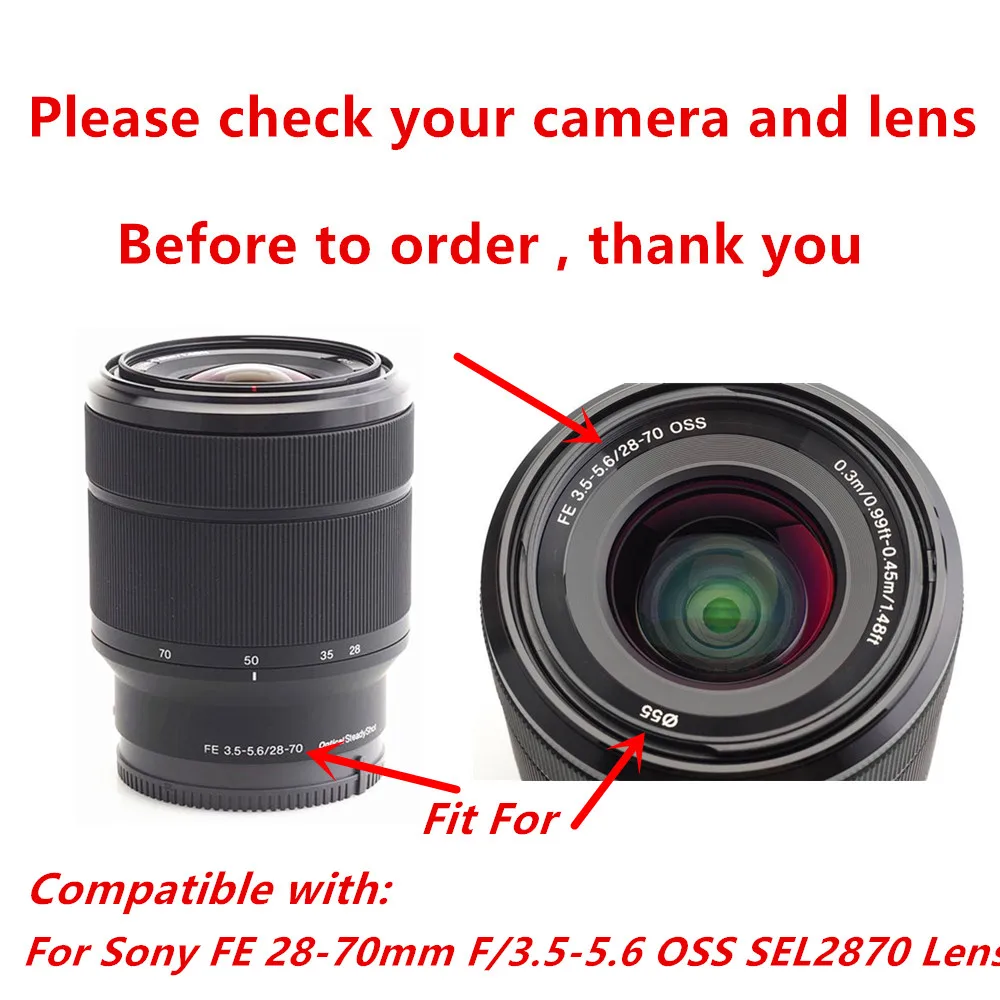 Protection Lentille Appareil Photo Capuchon De Pare-soleil ALC-SH132 SH132 Pour Adaptateur D Pare-soleil Objectif Sony 55mm Lens Hood Shade for Sony FE 28-70mm F/3.5-5.6 SEL2870 A7M2 R2 LIU 7615069254429 pare soleil d'appareil photo Pare soleil en ABS HB 40... Avec sa construction facile à installer et légère. Caractéristiques : Article : pare-soleil ALC-SH132., Applicable à : FoFE 28-70 mm., ABS., Taille : standard., Objectif : environ 55 mm. Les mesures étant prises à la main, les tailles indiquées peuvent varier de 0 à 1 cm. Bloque la lumière indésirable et protège la lentille contre les collisions, pour éviter la pluie et Pour la photographie en plein air, les voyages et toute situation où vous avez besoin de contrôler la quantité et la direction de la lumière frappant votre objectif. Pour la photographie en plein air, les voyages et toute situation où vous avez besoin de contrôler la quantité et la direction de la lumière frappant votre objectif. votre photographie avec le pare-soleil ALC-SH132, conçu pour fournir un effet de blocage optimal de la lumière pour les prises de vue. Bloque la lumière indésirable et protège la lentille contre les collisions, pour éviter la pluie et Empêche la lumière parasite de pénétrer dans l'objectif. Protection supplémentaire contre les chocs...