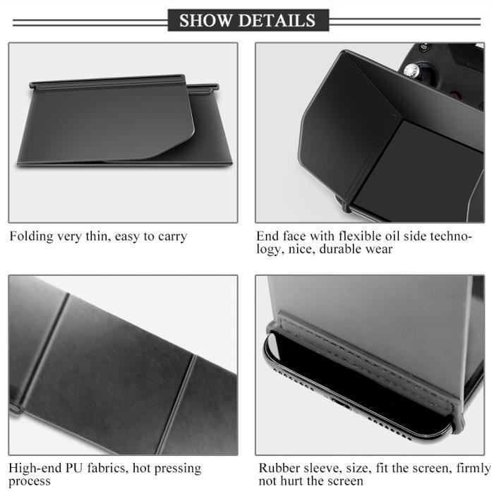 Combo 6-Pare-soleil Pliable Magnétique Pour Tablette Mavic Pouces, Avec Control Remoto Monitor Teléfono YUNYI BRAND Parasol Negro Para Drone | Bodega Aurrera en línea Protection écran Soleil Extérieur Pare-soleil Pour Téléphone, Accessoire Pour Tablette, Pare Anti-reflet écran [Matériau de haute qualité] Fabriqué dans un matériau de haute qualité, garantissant durabilité, résistance à l'usure et respect de l'environnement pour une utilisation . Spécifications : Condition : tout neuf Type : pare-soleil Tissu : PU + caoutchouc Couleur : noir Modèle compatible : pour Spark/Phantom3/Phantom 4/Inspire/Osmo Poids du colis : env. Pare-soleil pliable pour téléphone portable, tablette pour DJI - Copatible avec DJI avic Pro... [Pliable et léger] Conception facilement pliable et légère pour une portabilité facile partout où vous allez, ce qui le rend idéal pour les voyages., 1., Fabriqué à partir d'un matériau de haute qualité, ce qui le rend plus résistant à l'usure et 2., Conception de fixation de manchon en caoutchouc de taille standard pour bien s'adapter à l'écran du téléphone ou de la tablette sans rayer l'écran 3., Avec une forte stabilité et une absorption de la lumière pour éviter, offrant plus de commodité à utiliser en extérieur 4., La conception pliable et légère est facile et pratique à transporter 5., Spécialement conçu pour les drones Spark/Phantom3/Phantom 4/Inspire/Osmo Spécifications : Caractéristiques : 1., Fabriqué à partir d'un matériau de haute qualité, ce qui le rend plus résistant à l'usure et ., 2., Conception de fixation de manchon en caoutchouc de taille standard pour bien s'adapter à l'écran du téléphone ou de la tablette sans rayer l'écran., 3., Avec une forte stabilité et une absorption de la lumière pour éviter, offrant plus de commodité à utiliser en extérieur., 4., La conception pliable et légère est facile et pratique à transporter., 5., Spécialement conçu pour le drone Spark/Phantom3/Phantom 4/Inspire/Osmo. 63-153g Options : L111, L121, L128, L168 L111 taille de téléphone adaptée : L121 taille de téléphone adaptée : L128 taille de téléphone adaptée : L168 taille de téléphone adaptée /taille de la tablette : Liste des paquets : 1 x pare-soleil [Pliable et léger] Conception facilement pliable et légère pour une portabilité facile partout où vous allez, ce qui le rend idéal pour les voyages. [Compatibilité avec les drones] Spécialement conçu pour les drones Spark, Phantom 3, Phantom 4, Inspire et Osmo, garantissant un ajustement et une fonctionnalité parfaits.