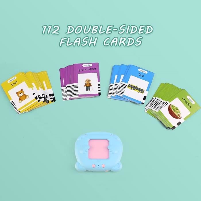 Cartes Flash Parlantes,Préscolaire Enfants Jouets Interactifs, 112 Les cartes flash parlantes couvrent 12 sujets, y compris 5 formes, 8 personnes, 8 emplois, 9 couleurs, 10 nature, 16 costumes, 17 légumes, 18 fruits, 21 aliments, 25 véhicules, 31 nécessités quotidiennes, 56 animaux, qui sont très adaptées pour les enfants âgés de 2 ans et plus Jouet Enfant 3 Ans Cartes Flash Parlantes Bilingual (Français Et Anglais), Flash Jeux Bebe 1 An Conçu pour les 3-6 ans, ce jouet stimule la curiosité, la mémoire auditive et l’expression linguistique à travers des scènes quotidiennes et des interactions amusantes. 【Autonomie Longue Durée & Portable】Batterie 300mAh rechargeable par USB-C (charge complète en 1h) → Jusqu’à 5h de jeu continu ! Cartes Flash Parlantes Bilingual avec Tablette d'écriture LCD, Flash... 【Sécurité Enfant & Durabilité Optimale】Conçues en ABS antibactérien sans BPA et cartes ultra-épaisses 300g aux coins arrondis, elles résistent aux chutes, aux déchirures et sont testées en laboratoire pour une utilisation sans risque dès 3 ans – aucun produit chimique, aucune odeur désagréable ! Éteint automatiquement après 10 minutes d’inactivité. ), il se glisse dans un sac pour apprendre en voiture, à l’école ou en voyage. Compact et léger (pèse moins qu’une banane !