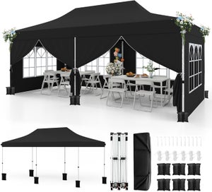 Tonnelle pliante 3x6 m imperméable avec parois et sac à Tente de réception pliable - Tonnelle de jardin - Barnum avec parois 3x6 m anthracite - MEUBLE... Tente événement étanche GOPLUS 3x6M Tonnelle Jardin Pliable Avec 6 Parois Latérales, Cadre Métallique Réglable, Entrées Tente De Toit 𝗨𝗡 𝗠𝗢𝗡𝗧𝗔𝗚𝗘 𝗦𝗜𝗠𝗣𝗟𝗜𝗙𝗜𝗘́ 𝗘𝗡 𝟱 𝗠𝗜𝗡𝗨𝗧𝗘𝗦 – Déballez, dépliez, fixez – c'est prêt ! Avec une protection UV 50+, cette tonnelle vous protège efficacement du soleil, assurant confort et sécurité pour tous vos convives. GOPLUS 3x6M Tonnelle Jardin Pliable avec 6 Parois Latérales, Cadre Métallique Réglable, Entrées... Idéale pour vos réceptions ou événements impromptus, elle vous offre un abri instantané et fonctionnel. 𝗖𝗢𝗠𝗣𝗢𝗦𝗜𝗧𝗜𝗢𝗡 𝗖𝗢𝗠𝗣𝗟𝗘̀𝗧𝗘 𝗗𝗨 𝗦𝗘𝗧 – Ce pack inclut une tonnelle couleur noir de 3x6 m avec son toit pré-monté, 6 parois latérales (4 avec fenêtres, 2 avec fermetures éclair), 6 cordes d'ancrage, 12 piquets de terre, un sac de transport pratique et un manuel d'instructions détaillé pour un montage aisé. Veuillez noter que l'expédition s'effectue en deux colis séparés pour une meilleure gestion logistique. Son format compact facilite le rangement et le transport.