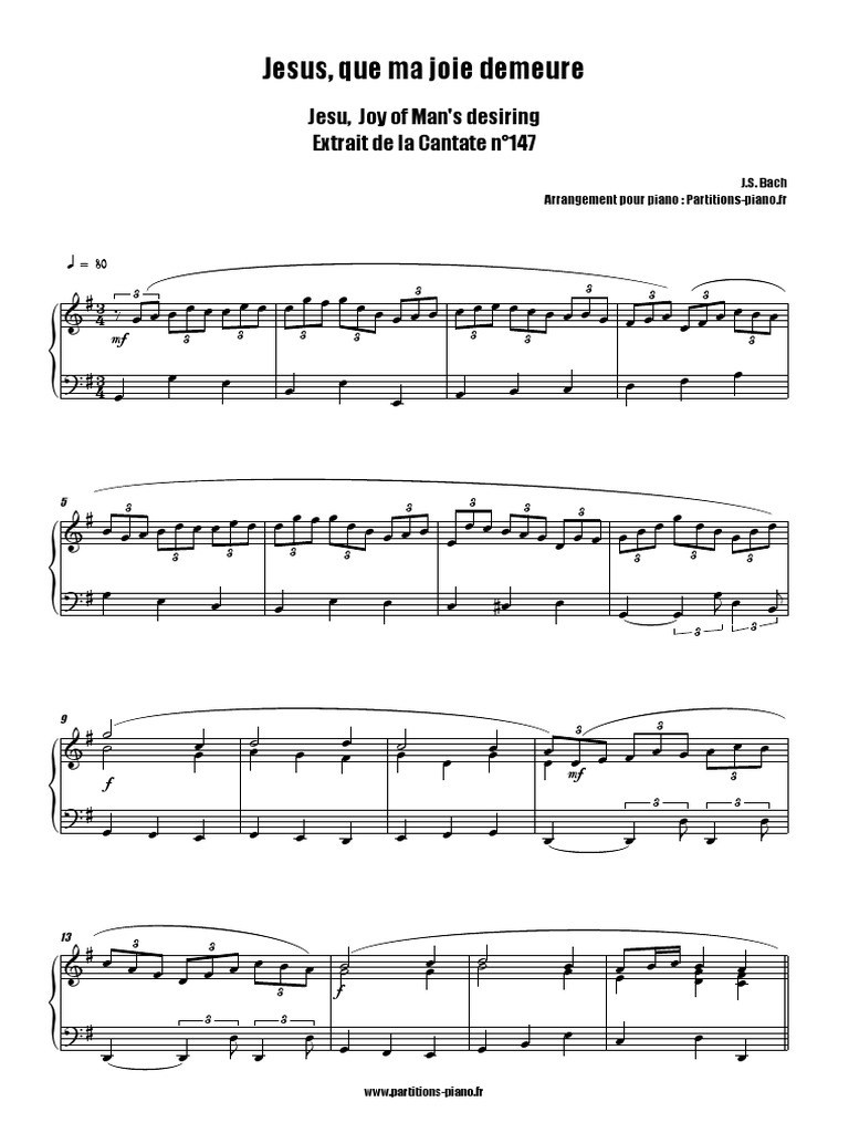 La Cantate BWV 147 comprend l'un des chorals les plus connus de toute l'œuvre de Bach : Jésus, que ma joie demeure. L'arrangement pour piano, qui vous est... La Cantate BWV 147 comprend l'un des chorals les plus connus de toute l'œuvre de Bach : Jésus, que ma joie demeure. L'arrangement pour piano, qui vous est proposé ici, traduit fidèlement l'esprit de l'oeuvre originale La Biographie De Jésus Partition JÉSUS, QUE MA JOIE DEMEURE BWV 147 Que Ma Joie Demeure Streaming Jésus Que Ma Joie Demeure Partition Pdf Jésus Que Ma Joie Demeure - Cantate N°147 De Johann Sebastian Bach | Comprar En Stretta Tienda Cantate Bwv 147 Partition Pdf