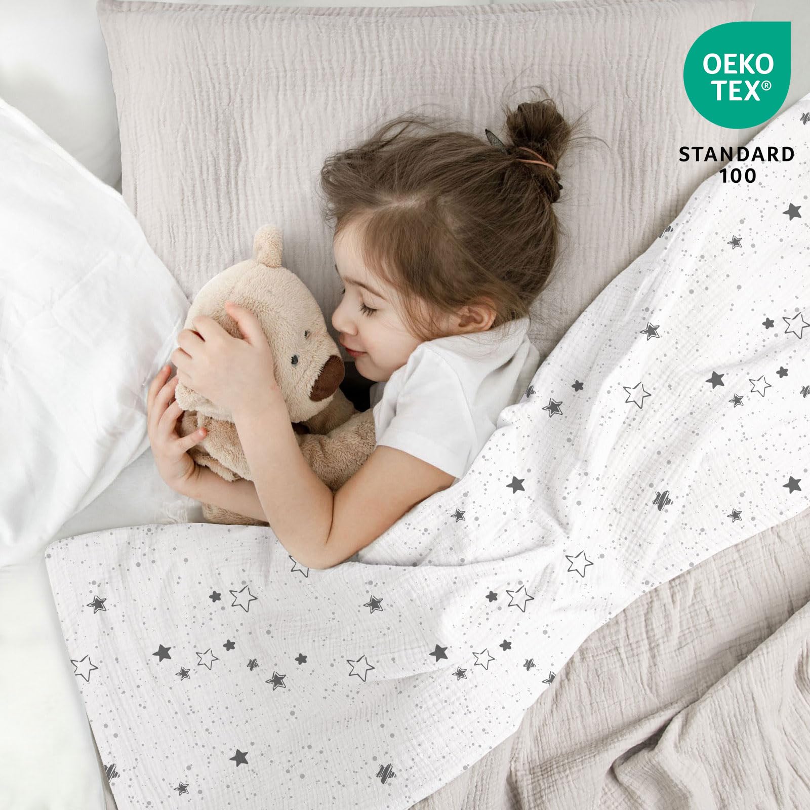 Ces enfants qui sont des petits dormeurs – Ooly En outre, elles peuvent être facilement séchées au sèche-linge, ce qui vous permet d'économiser un temps précieux et des efforts pour que vous puissiez passer plus de temps avec votre enfant, tout en gardant la parure de lit fraîche et propre. Coton Doux Respirant Parure De Lit En Mousseline, 140 X 200 Cm Housse Couette Bébé Dinosaure Douce Toutes les pièces sont lavables en machine à 30-60 °C et conservent leur forme et leur qualité même après plusieurs lavages. Découvrez cette parure de lit pour bébé en mousseline de coton 100%, douce et confortable, ornée de magnifiques broderies et d'un motif matelassé. Elle comprend une couverture à bulles et un drap-housse. Idéale pour une chambre d'enfant douillette et élégante Alavya Panda® Parure de lit pour enfant Panda - 2 pièces - Coton bio - Certifié GOTS et Oeko-Tex... Chaque parure est livrée dans un emballage attrayant et est idéale pour des occasions spéciales telles que la fête prénatale, le baptême ou le premier anniversaire. Cette conception bien pensée garantit que la couette tient parfaitement dans la housse et ne glisse pas, même avec les dormeurs particulièrement actifs. Elle exprime non seulement vos soins et vos meilleurs vœux, mais montre également à quel point le confort et le bien-être de votre petit chéri sont importants pour vous. Matériaux en coton : notre parure de lit est fabriquée en 100 % mousseline de coton, ce qui offre une sensation de douceur incomparable et garantit que votre enfant peut profiter d'un maximum de confort chaque nuit. Pour bébé : notre parure de lit élégante est idéale pour les futurs ou les nouveaux parents. Design moderne : notre parure de lit soigneusement conçue ajoute non seulement une esthétique moderne à la chambre de votre enfant, mais crée également une atmosphère chaleureuse.